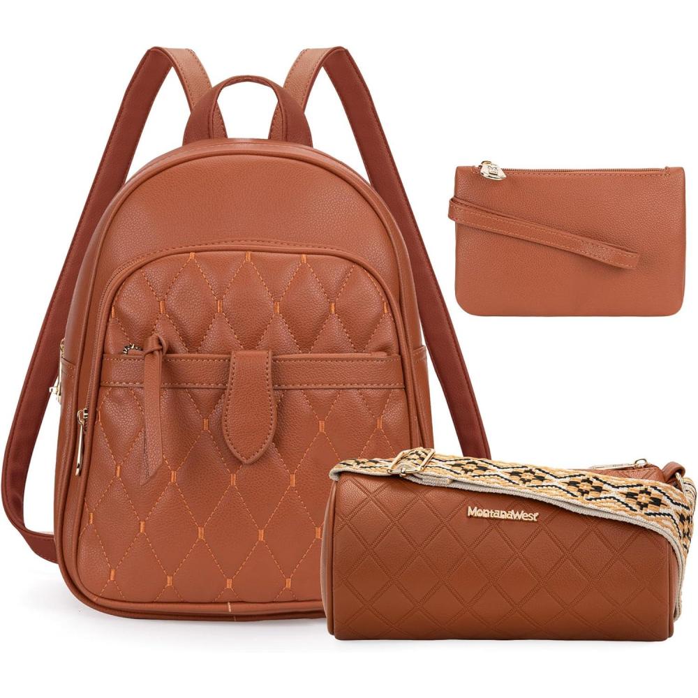 Medium Backpack Purse for Women Anti Theft Backpack with Secured Zipper & Tassel(3pcs Brown)