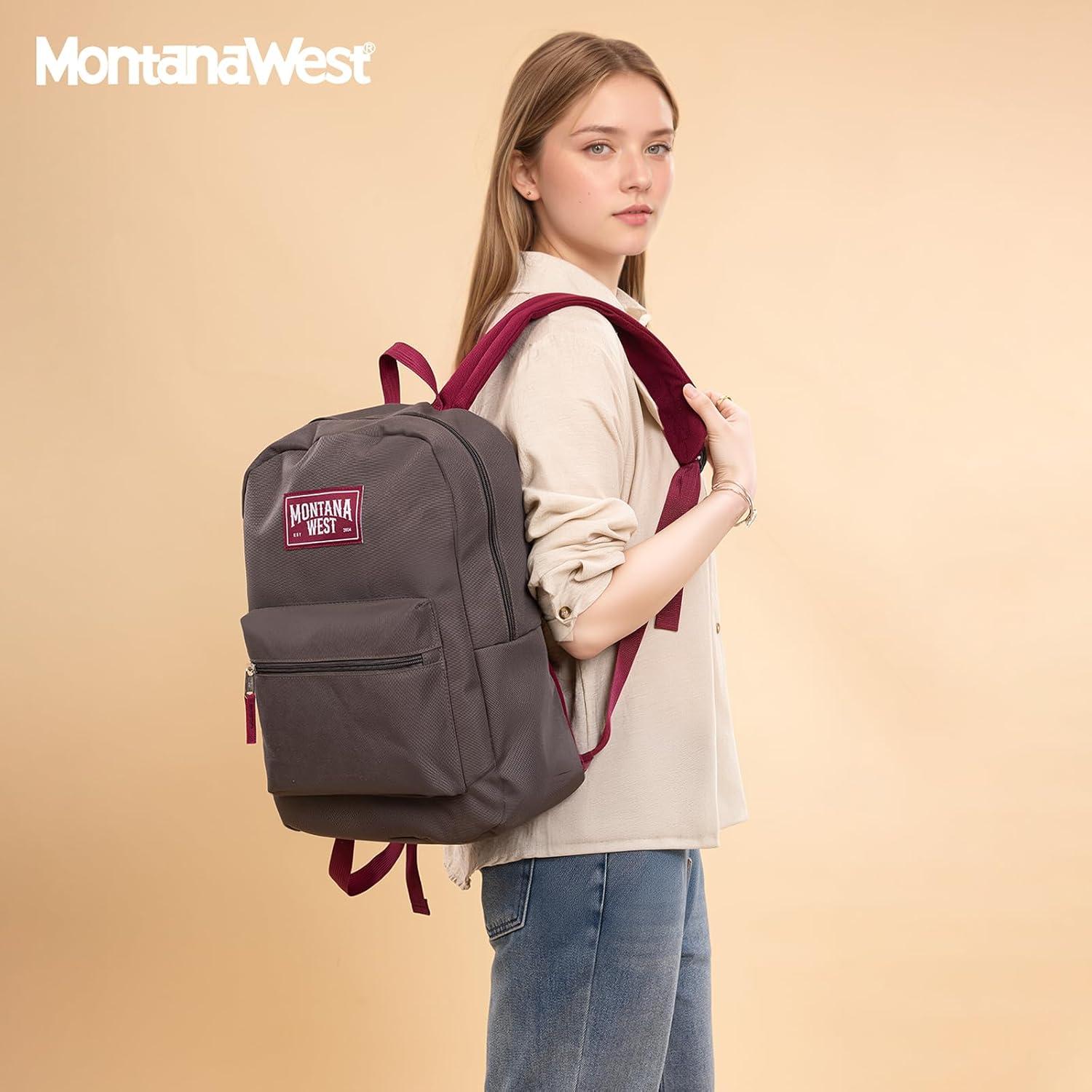 imageMontana West 2 Pcs Everyday Backpacks for Women Men Lightweight College Bookbag Casual Daypack Backpack for Commute ampamp TravelBlack  Brown