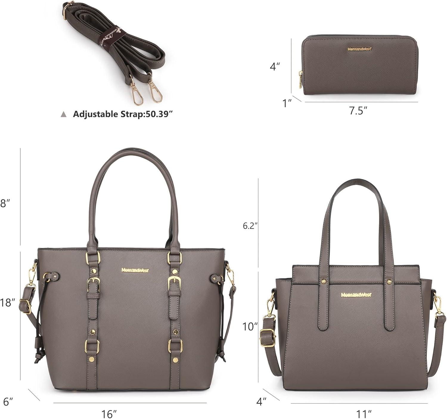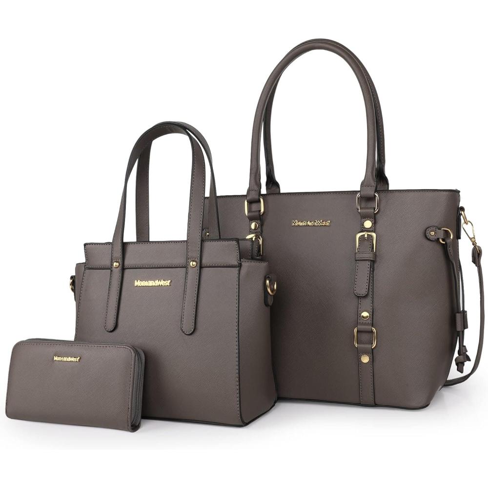 Montana West 3PCS Purses for Women Tote Bag and Wallet Set Shoulder Satchel Handbags(3pcs Grey)