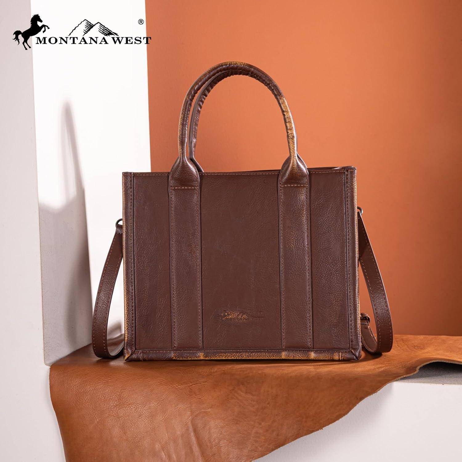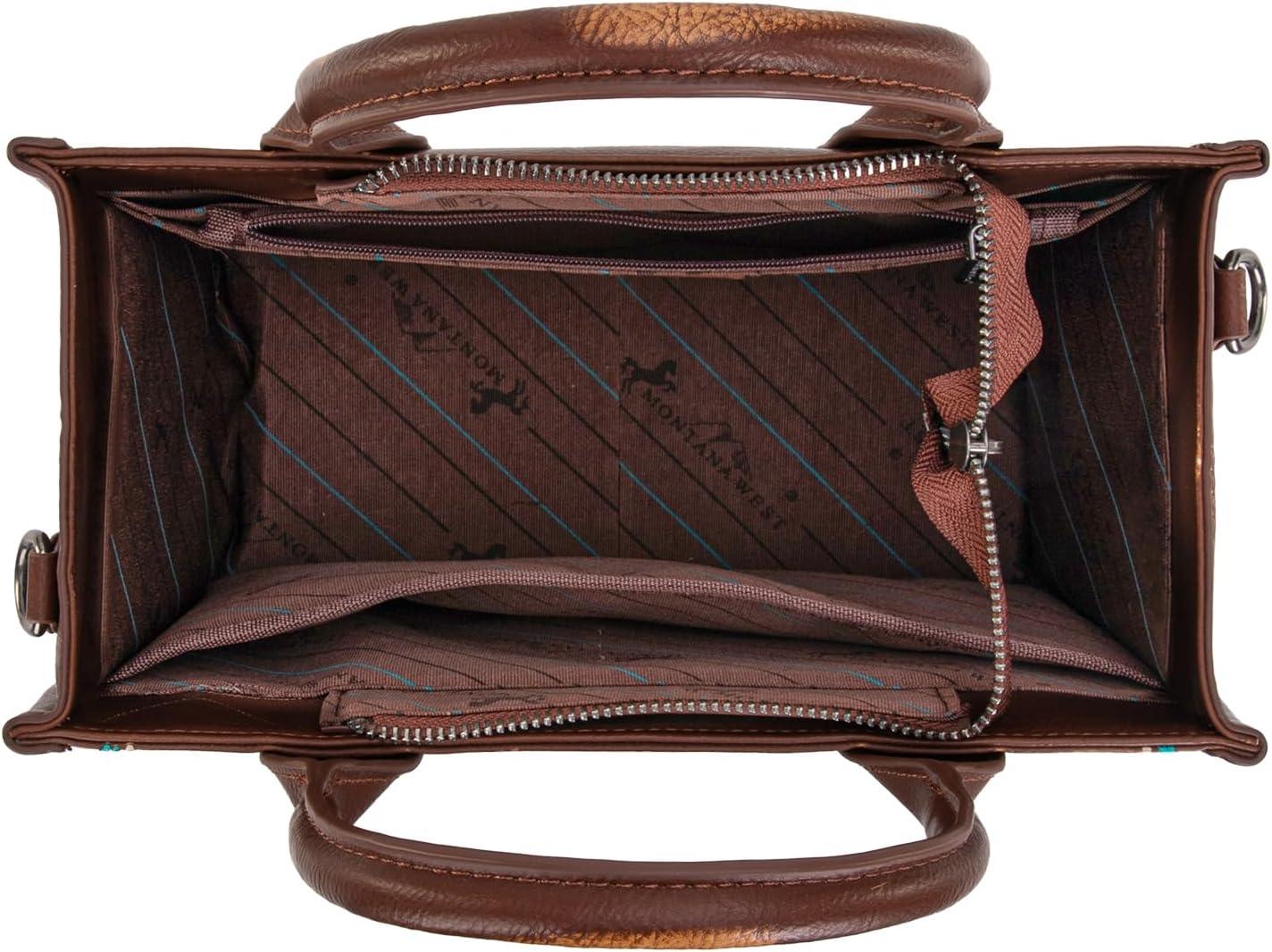Wrangler Small Tote Purse for Women Western Cowhide Designer Top-handle Handbags with Strap(Brown)