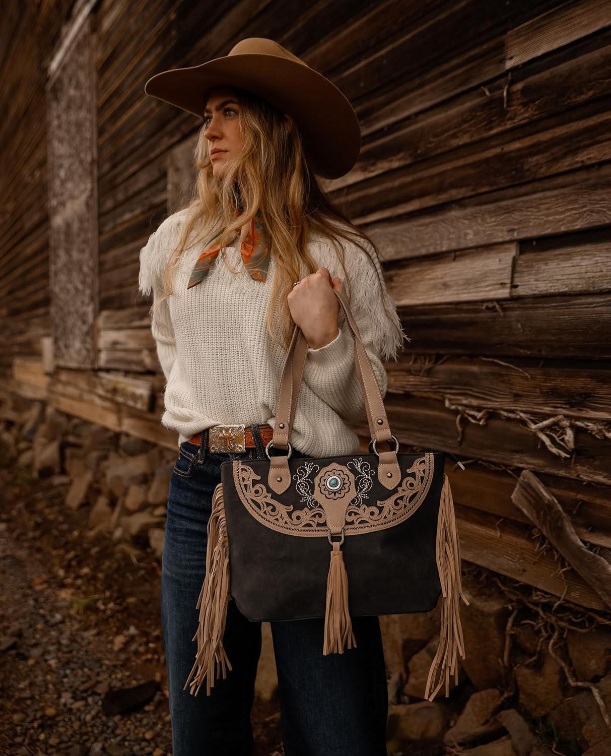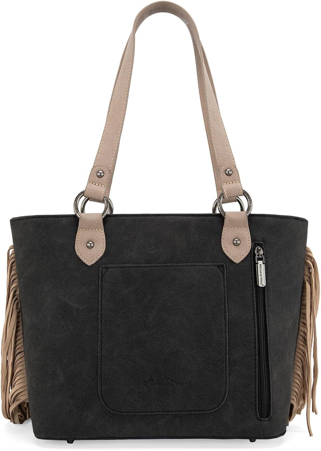 imageMontana West Aztec Tote Bag for Women Embroidered Western Shoulder Purse and Wallet SetFringe Black