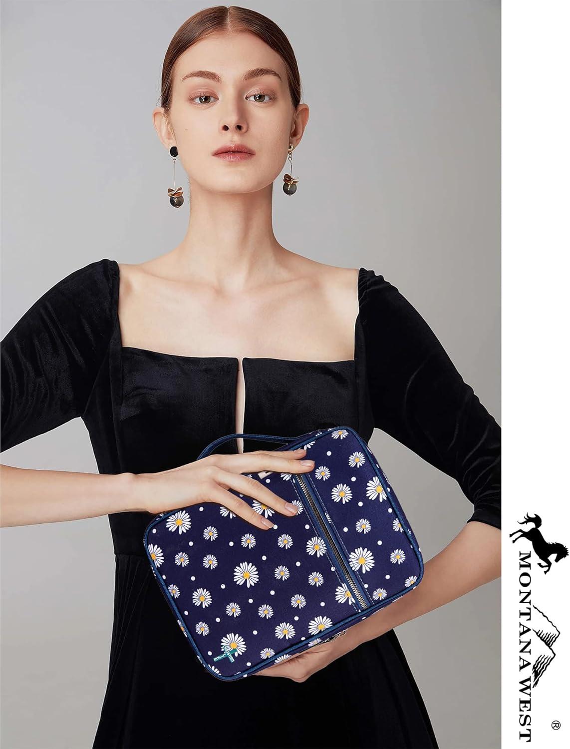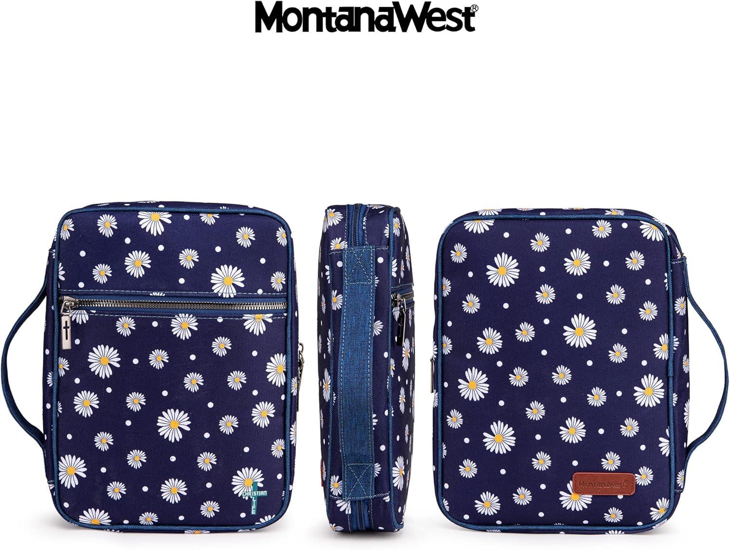 imageMontana West Bible Cover for Women Men with Leather Bookmark Book Carrying Cases Church Bag for Outdoor ProtectiveBlue