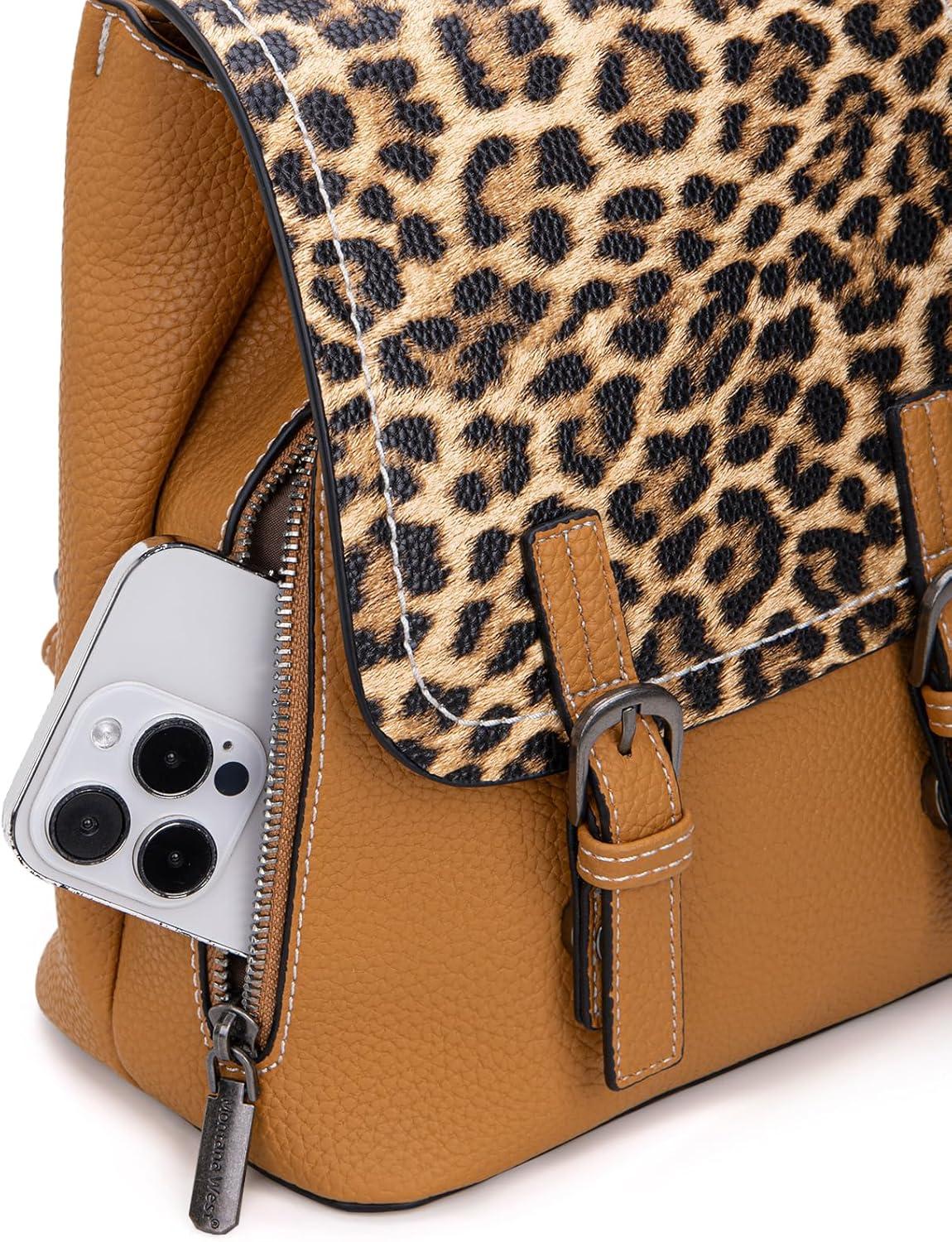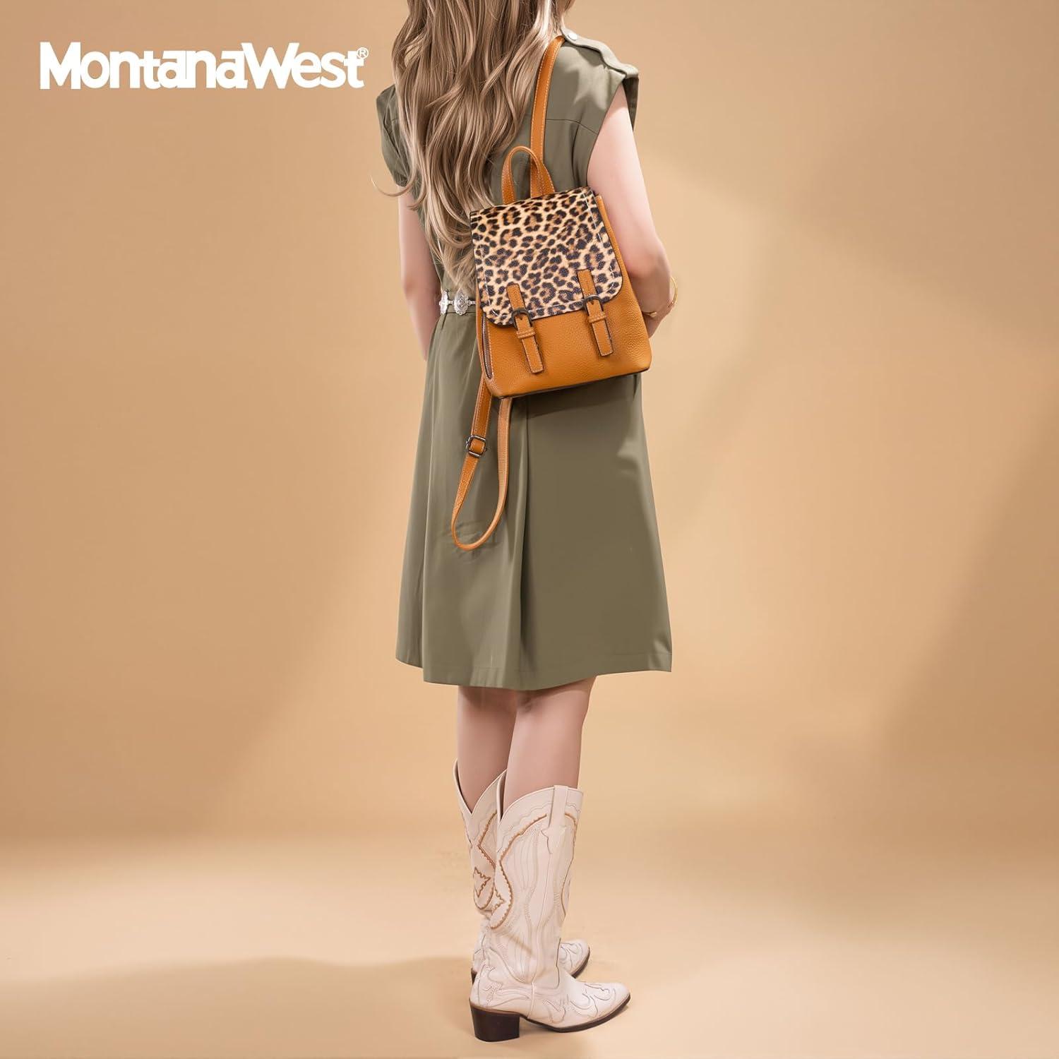 imageMontana West Black Cow Print Mini Womens Backpack Purse Vegan Leather Small Colorblock Backpack for Women Cute Convertible Shoulder BagBrown Leopard Print