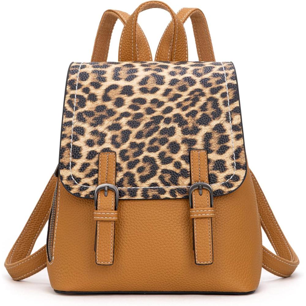 Montana West Black Cow Print Mini Womens Backpack Purse Vegan Leather Small Colorblock Backpack for Women Cute Convertible Shoulder Bag(Brown Leopard Print)