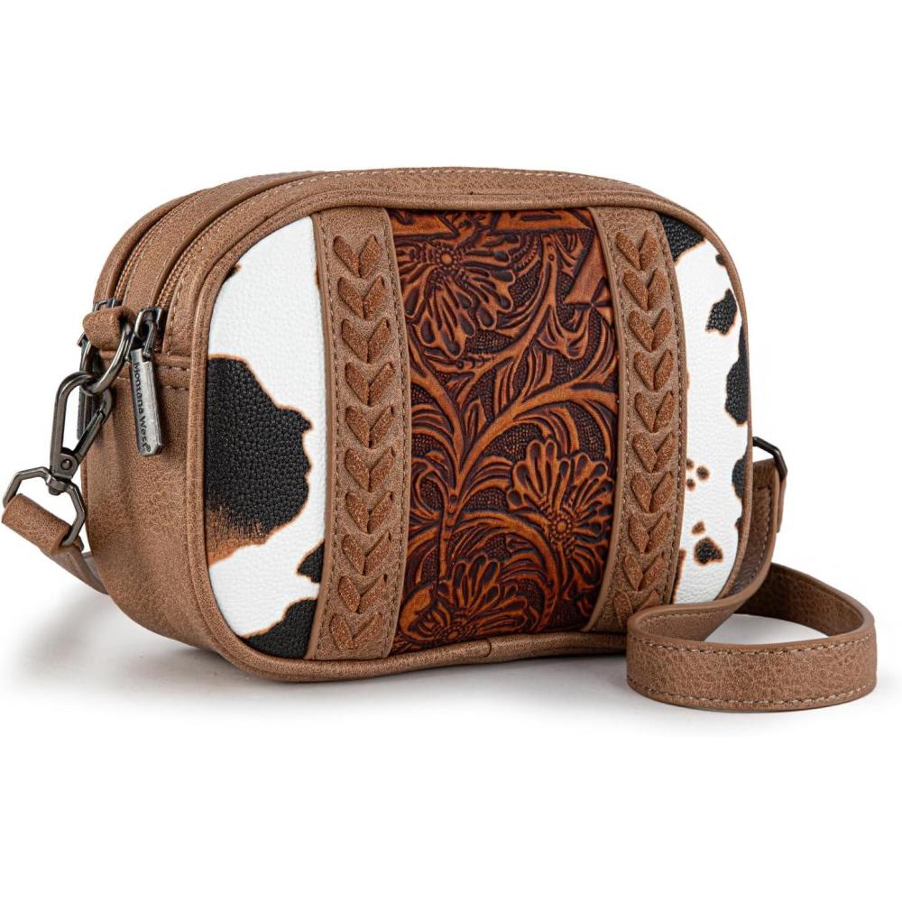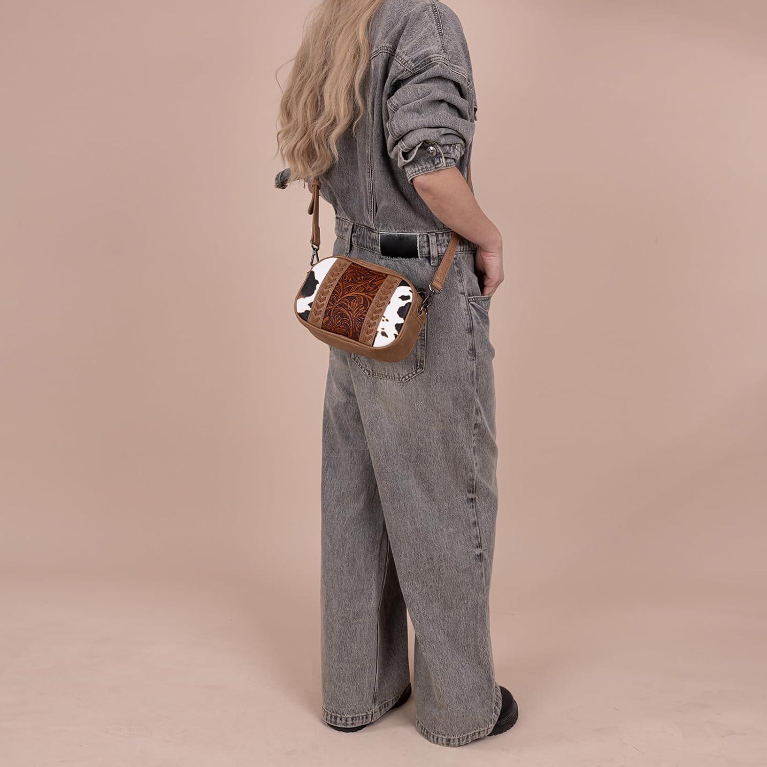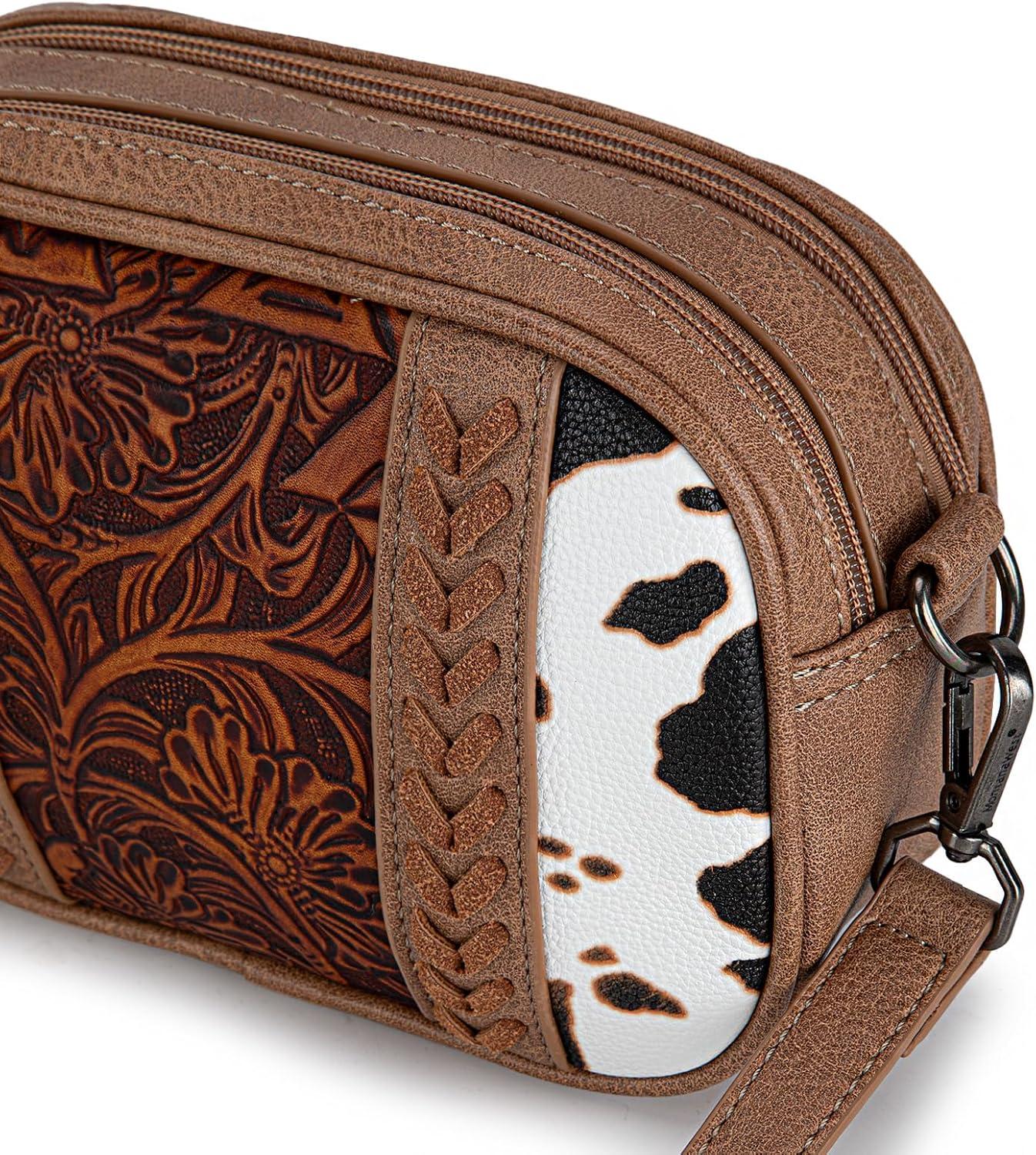Montana West Cow Print Crossbody Bags for Women Western Tooled Crossbody Purses with Built in Card Holder(Brown)