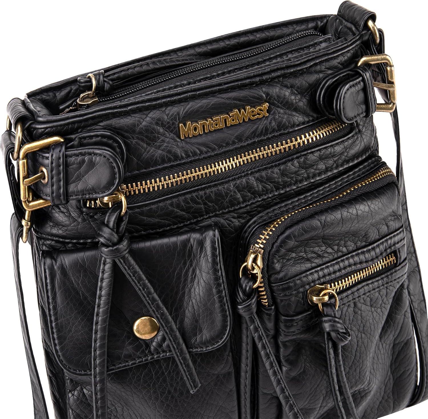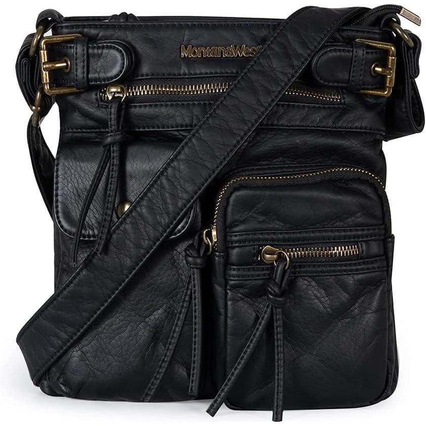 imageMontana West Crossbody Bag for Women Multi Pocket Shoulder Medium Travel Purses Ultra Soft Washed LeatherClassicblack