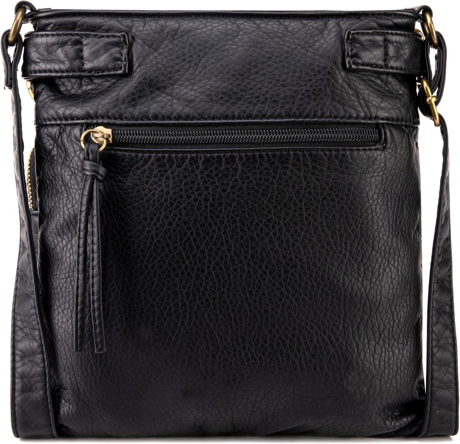 Montana West Crossbody Bag for Women Multi Pocket Shoulder Medium Travel Purses Ultra Soft Washed Leather(*Simple-black)