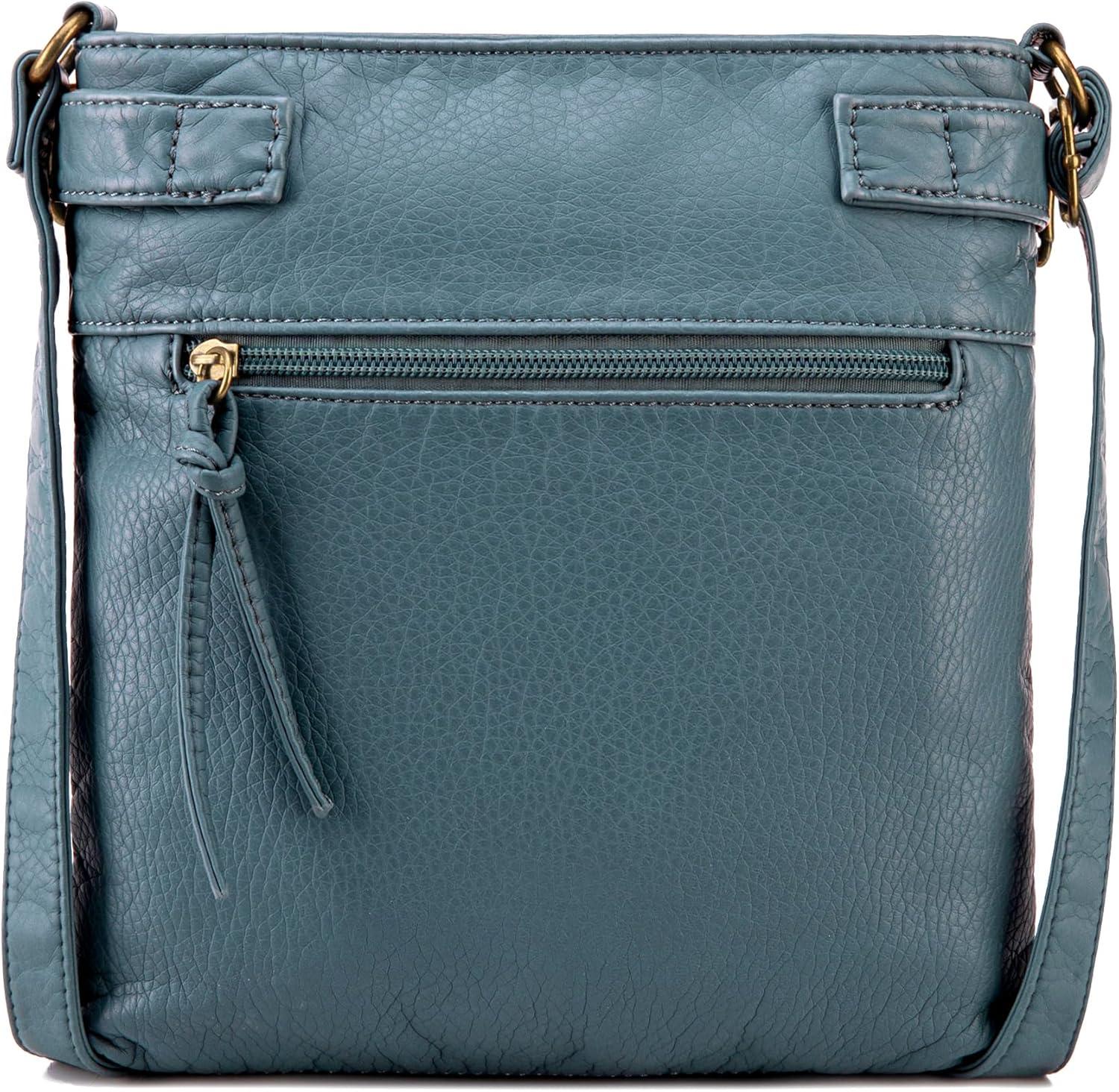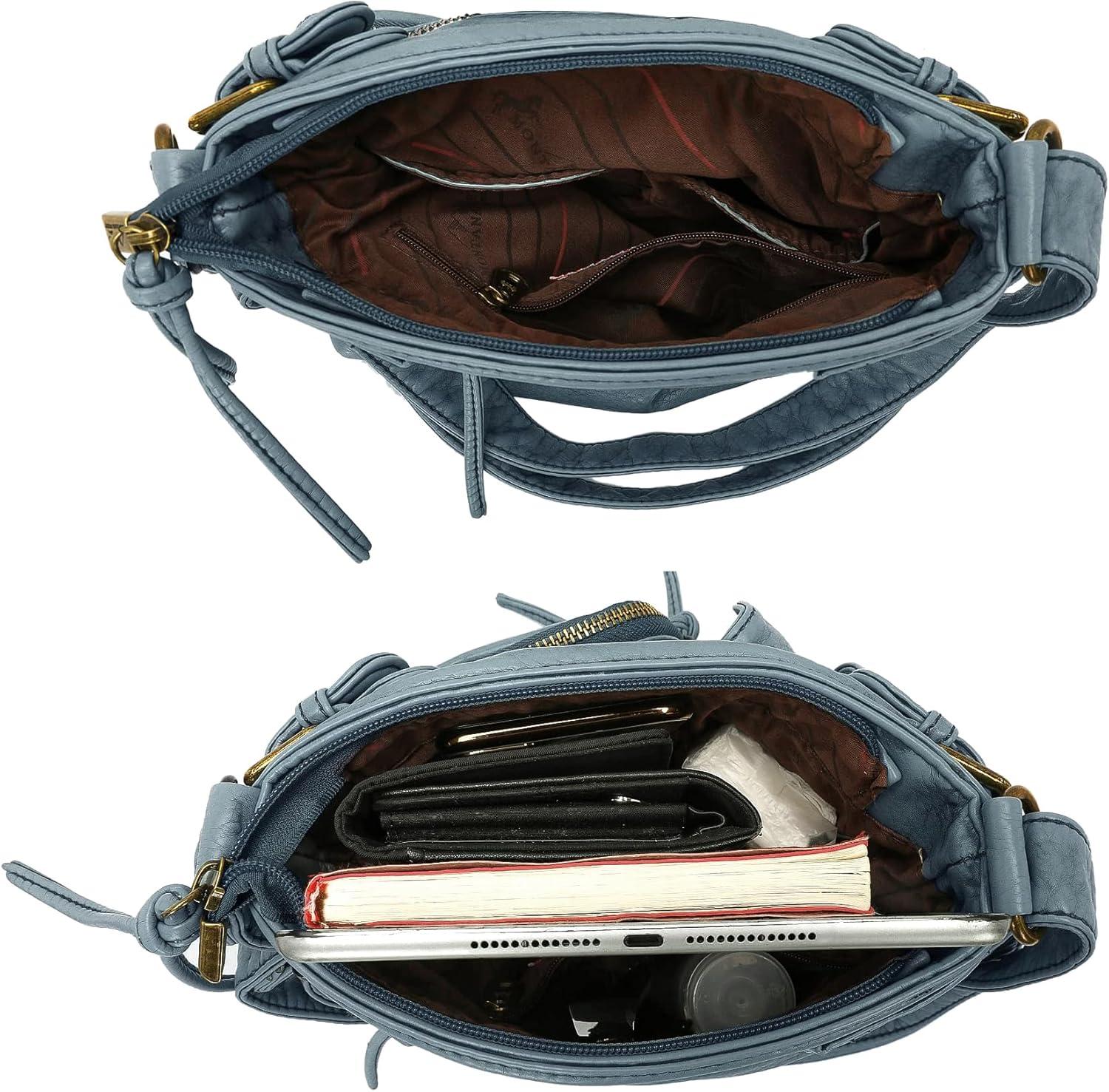 Montana West Crossbody Bag for Women Multi Pocket Shoulder Medium Travel Purses Ultra Soft Washed Leather(Classic-blue)