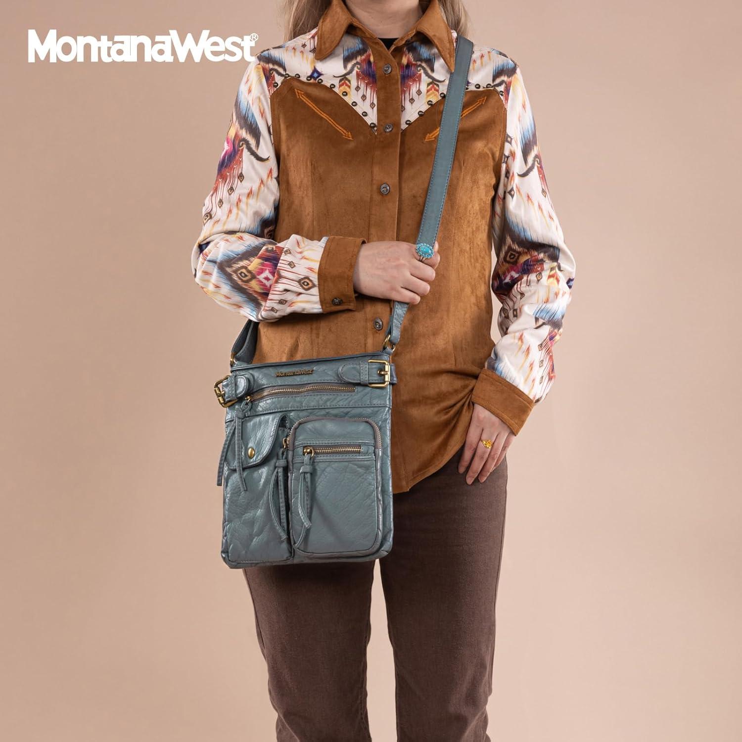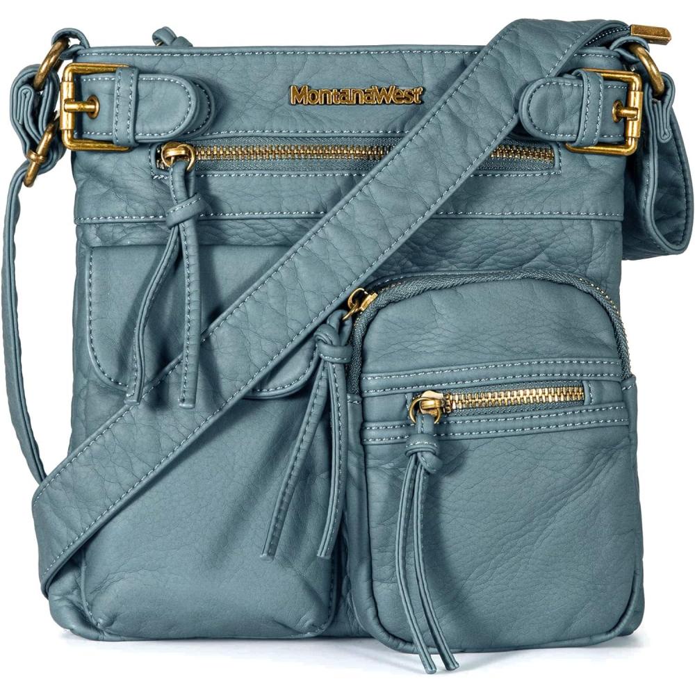 imageMontana West Crossbody Bag for Women Multi Pocket Shoulder Medium Travel Purses Ultra Soft Washed LeatherClassicblue Jean