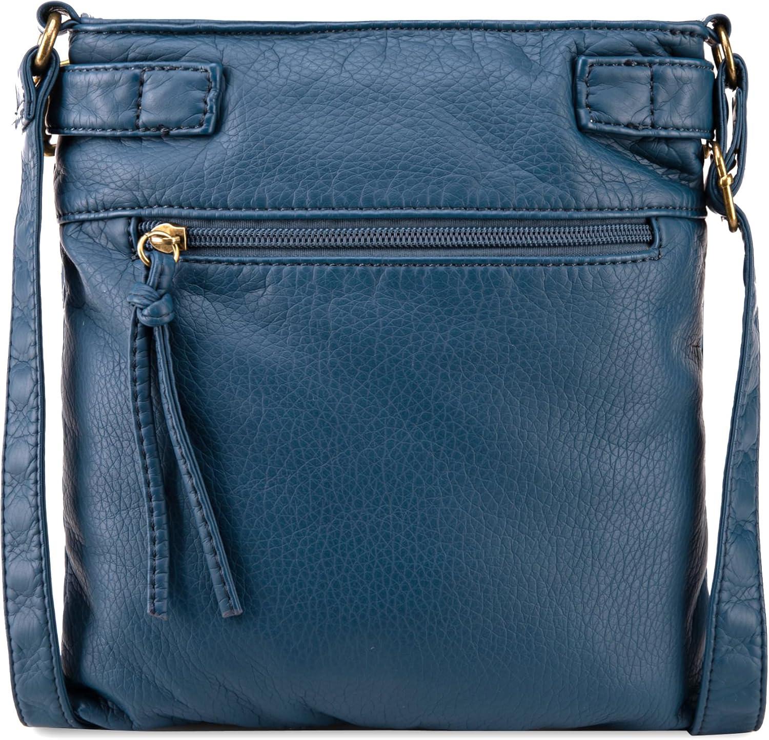 Montana West Crossbody Bag for Women Multi Pocket Shoulder Medium Travel Purses Ultra Soft Washed Leather(Classic-blue)