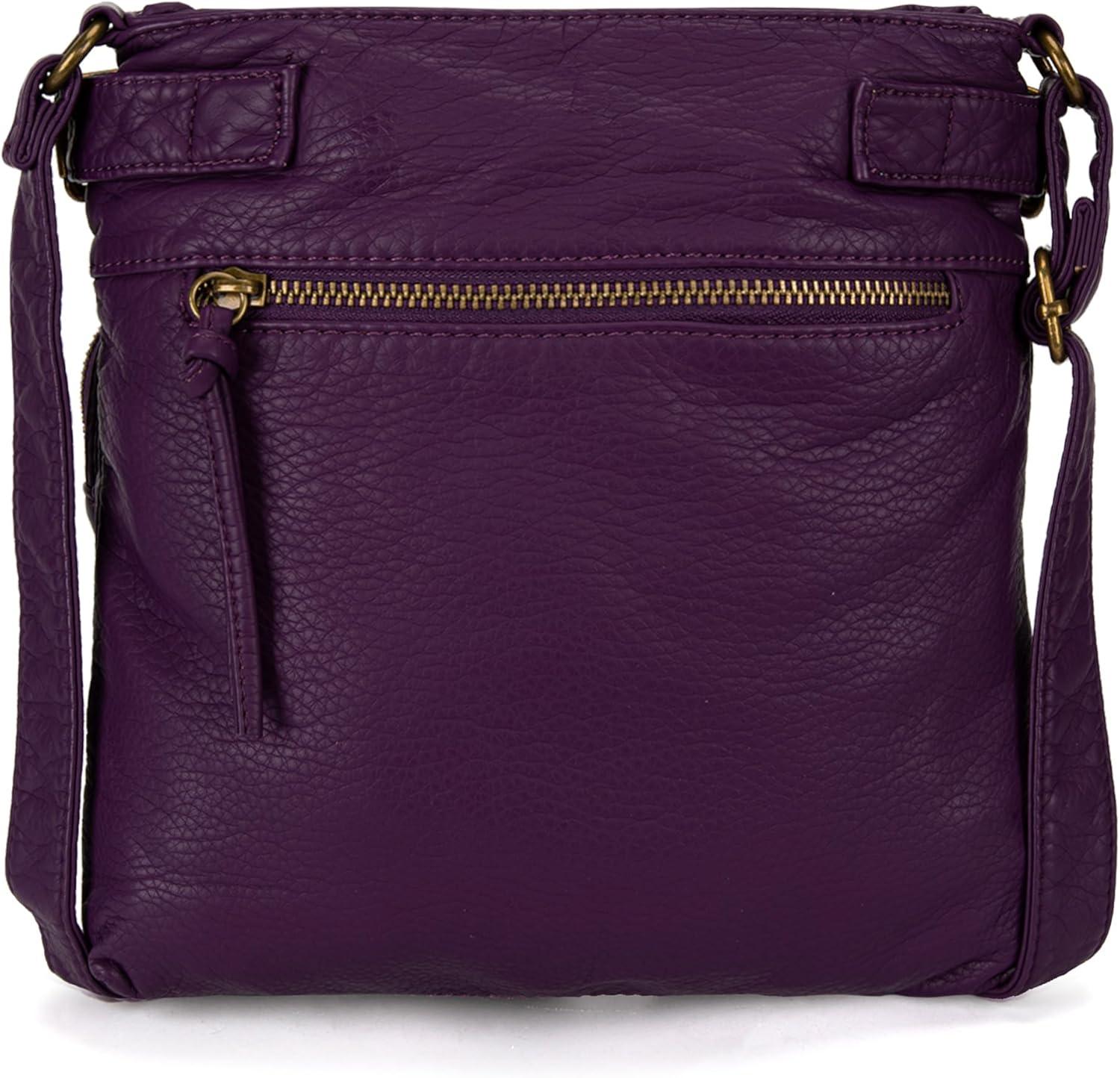 Montana West Crossbody Bag for Women Multi Pocket Shoulder Medium Travel Purses Ultra Soft Washed Leather(Classic-washed Leather-dark Purple)