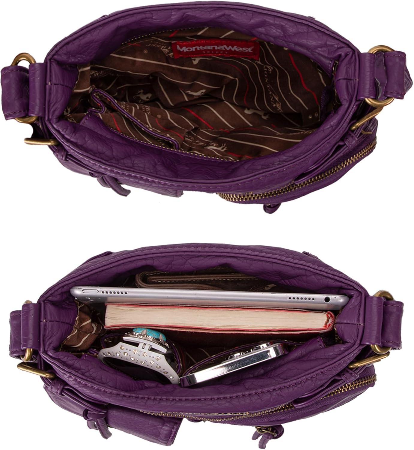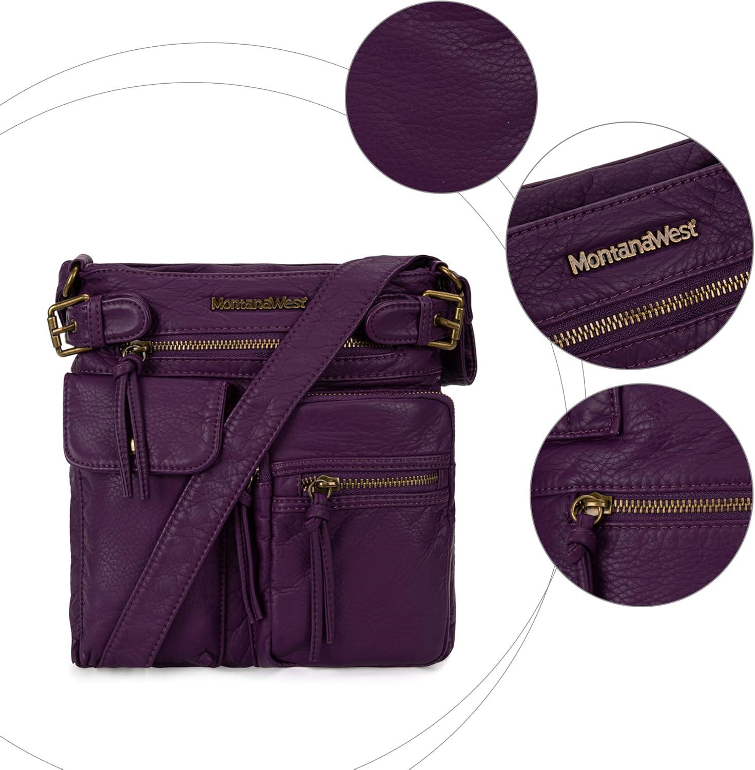 imageMontana West Crossbody Bag for Women Multi Pocket Shoulder Medium Travel Purses Ultra Soft Washed LeatherClassicwashed Leatherdark Purple