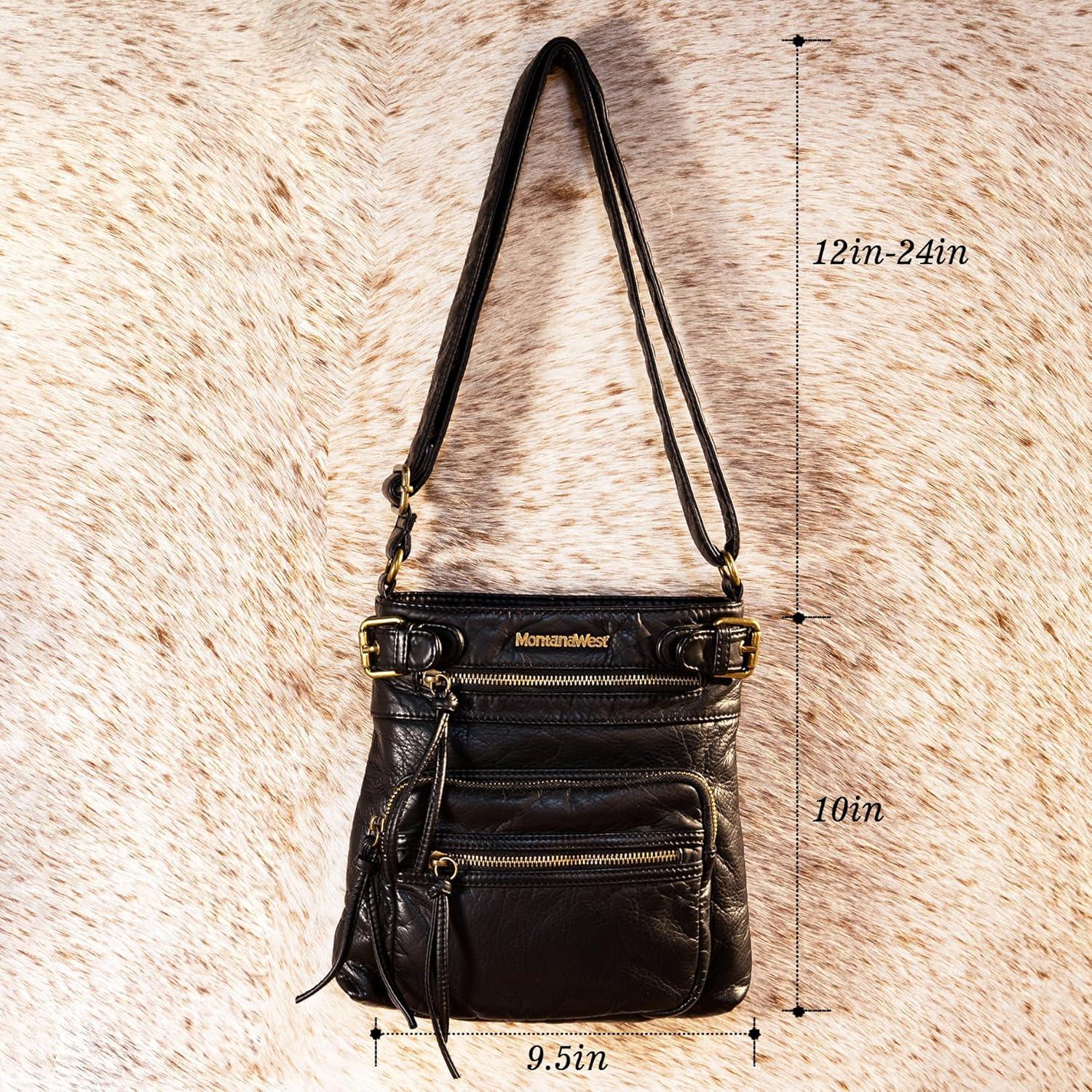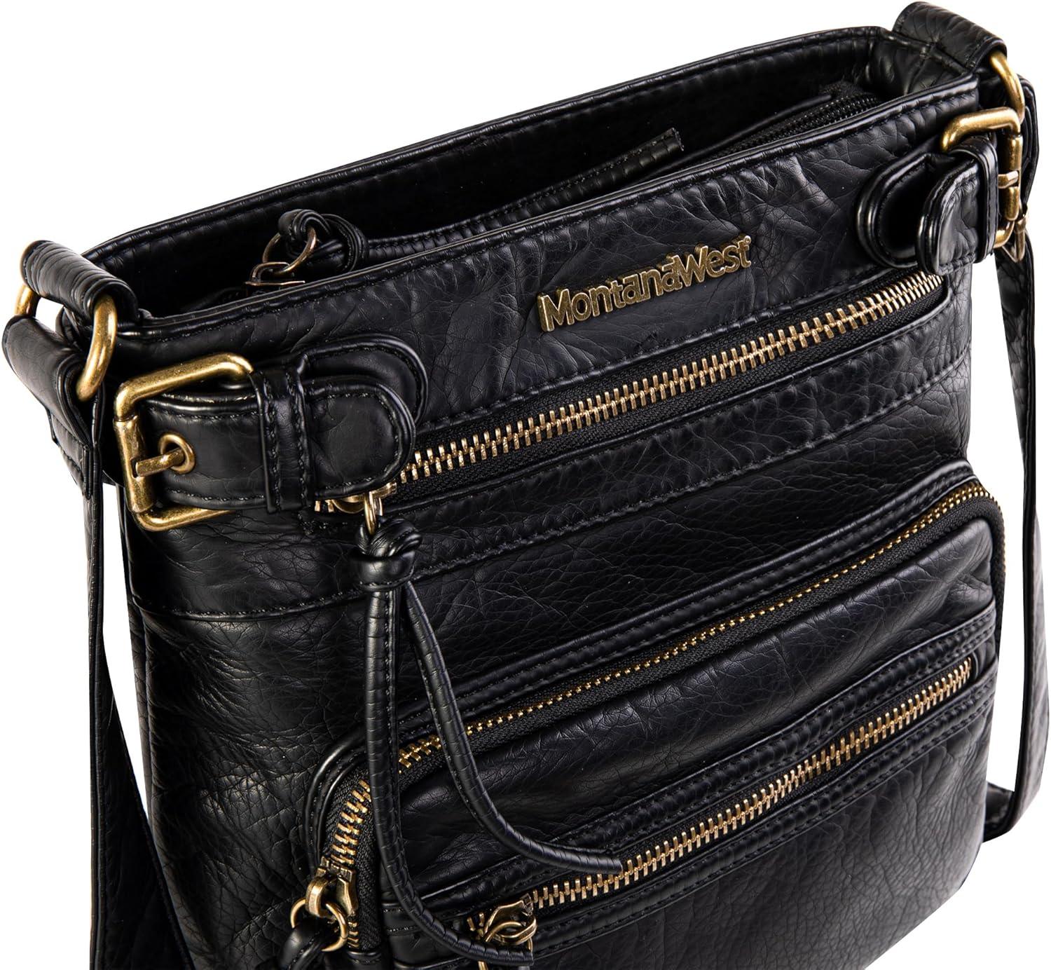 imageMontana West Crossbody Bag for Women Multi Pocket Shoulder Medium Travel Purses Ultra Soft Washed LeatherClassicblack