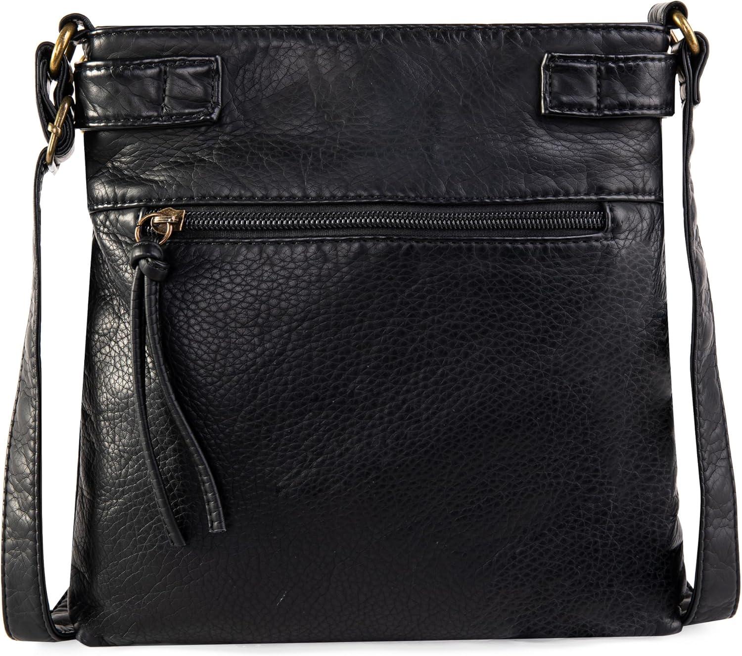 Montana West Crossbody Bag for Women Multi Pocket Shoulder Medium Travel Purses Ultra Soft Washed Leather(*Simple-black)