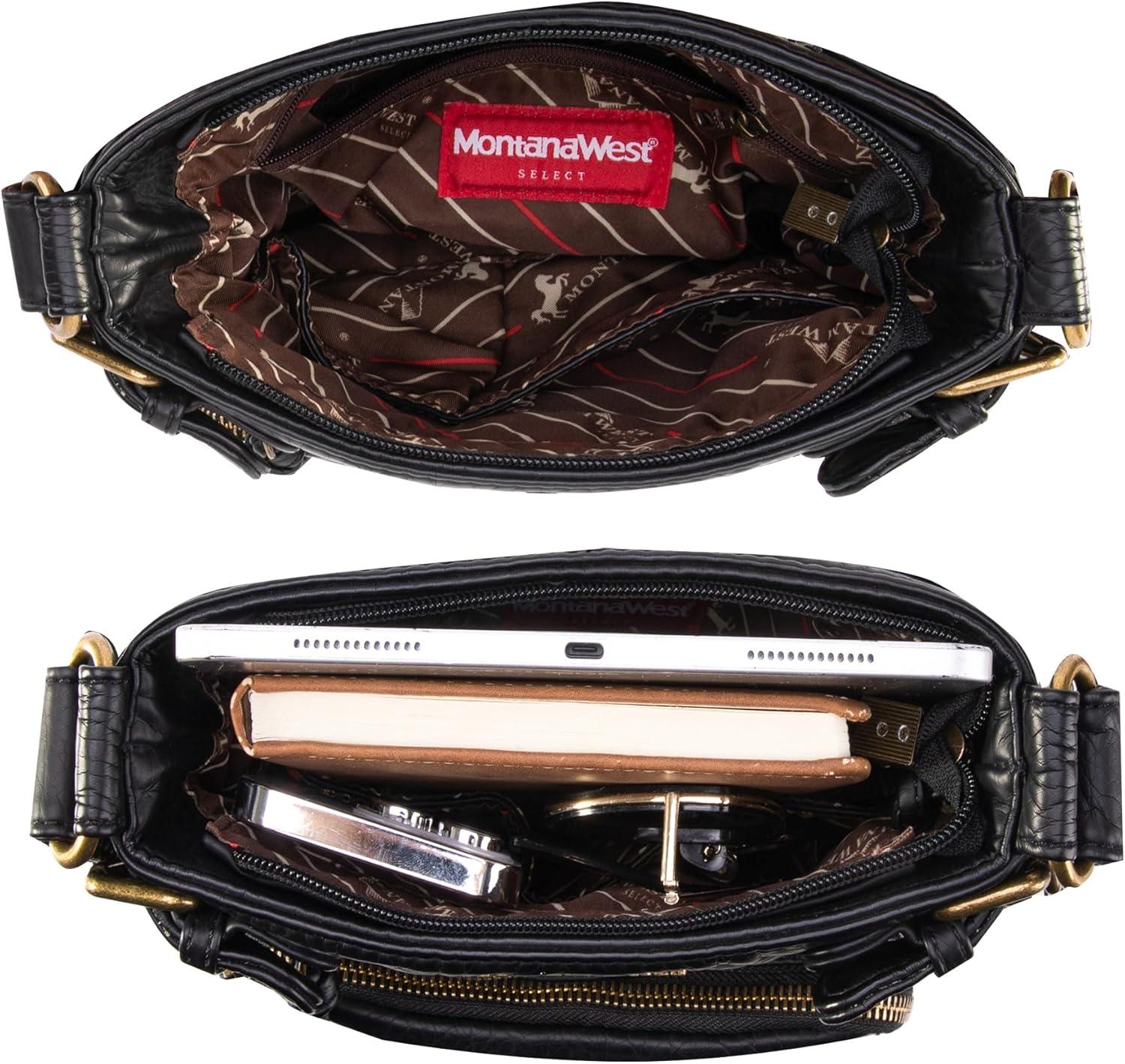 Montana West Crossbody Bag for Women Multi Pocket Shoulder Medium Travel Purses Ultra Soft Washed Leather(Classic-black)