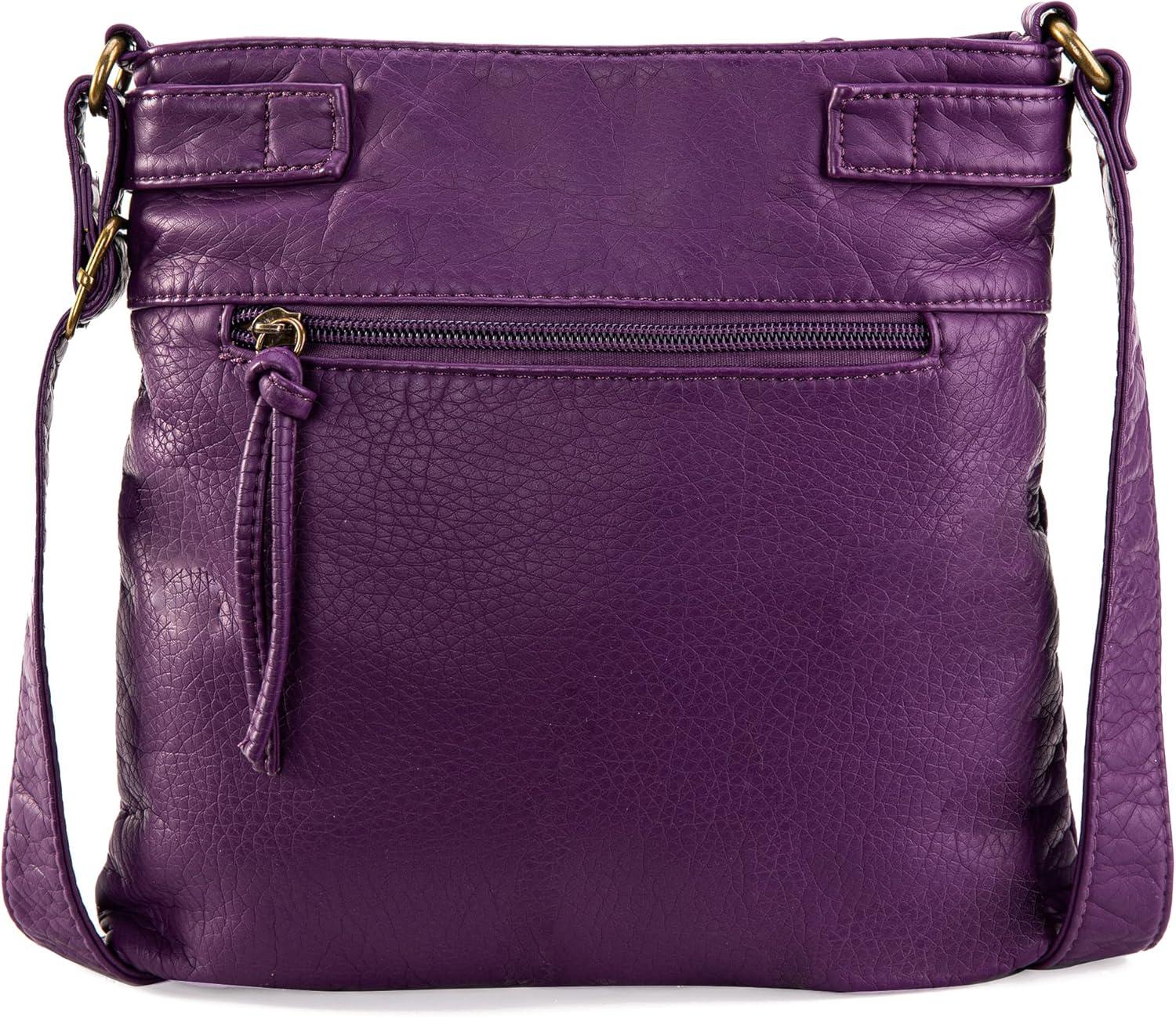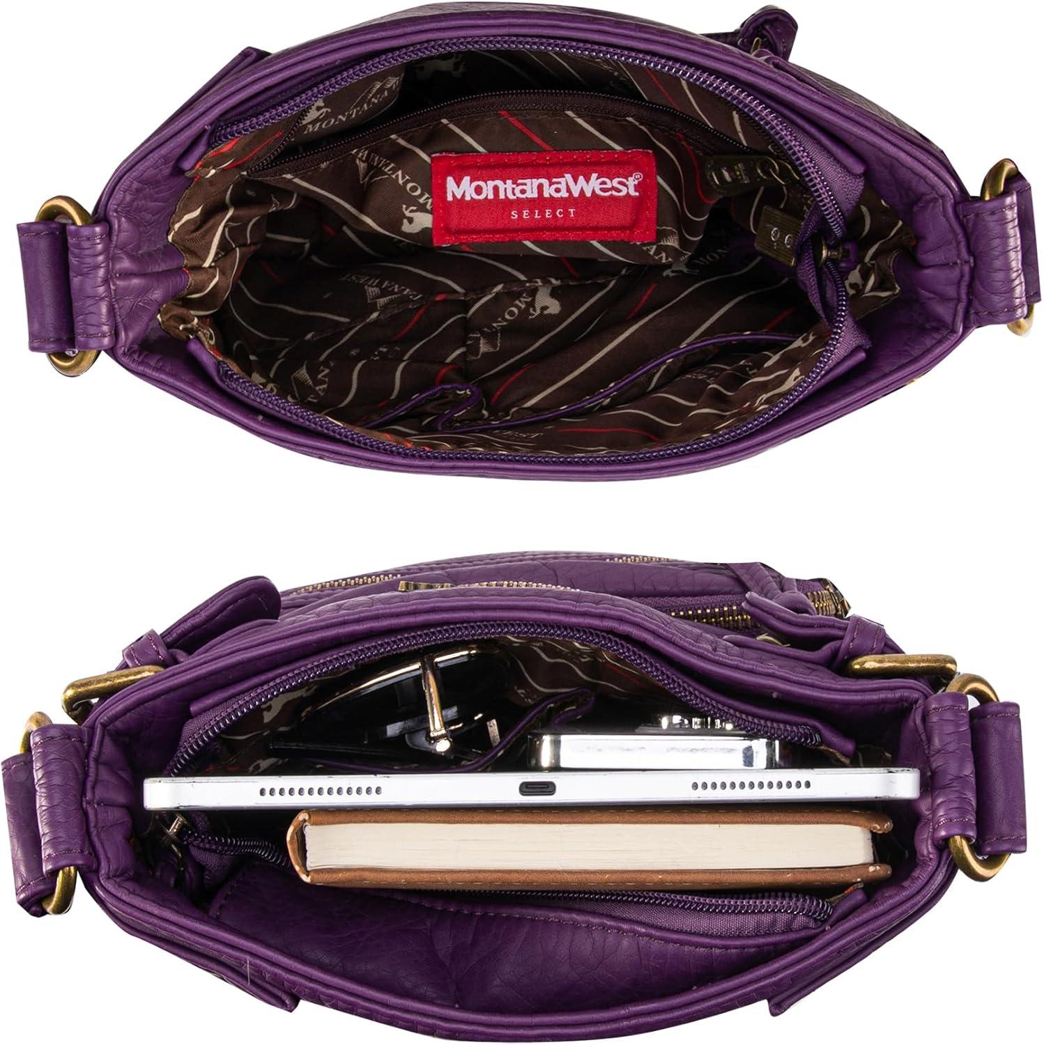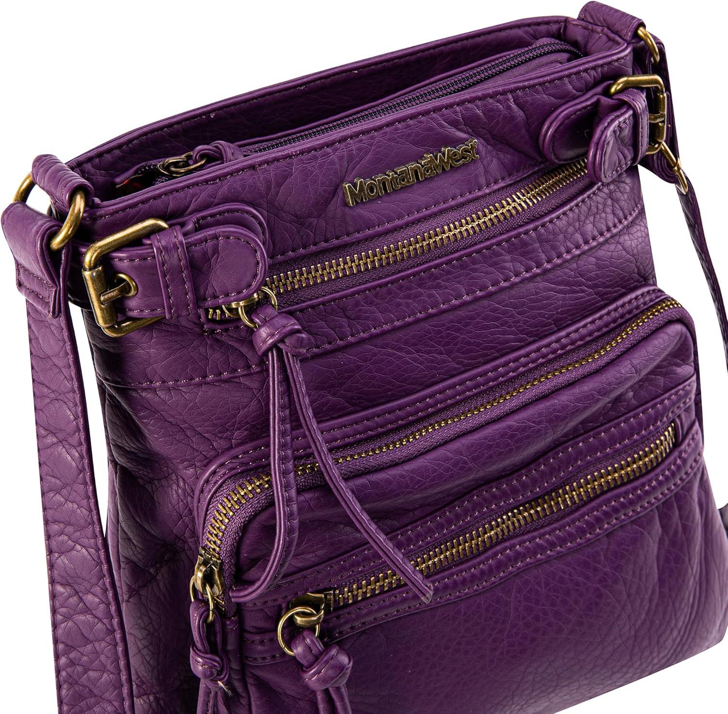 Montana West Crossbody Bag for Women Multi Pocket Shoulder Medium Travel Purses Ultra Soft Washed Leather(Simple-purple)