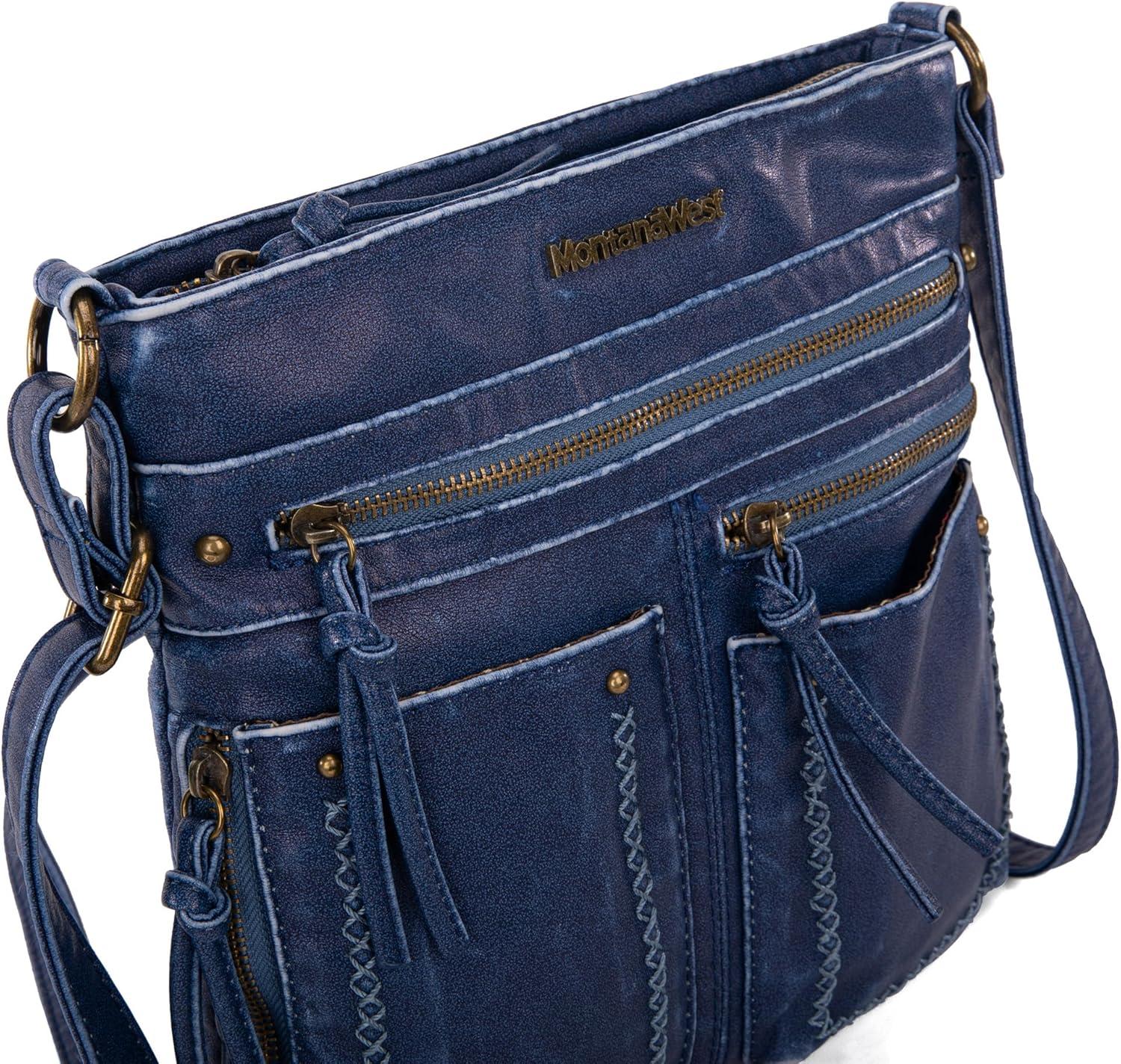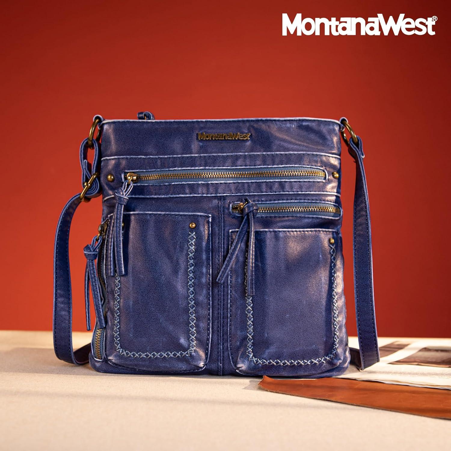 Montana West Crossbody Bag for Women Multi Pocket Shoulder Medium Travel Purses Ultra Soft Washed Leather(Vintage-jean)