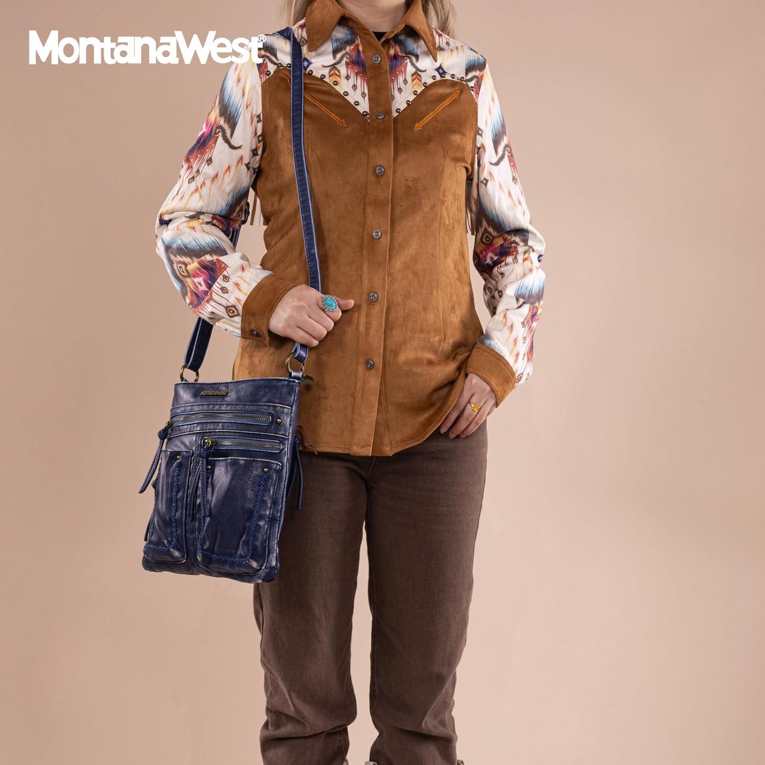 imageMontana West Crossbody Bag for Women Multi Pocket Shoulder Medium Travel Purses Ultra Soft Washed LeatherVintagejean