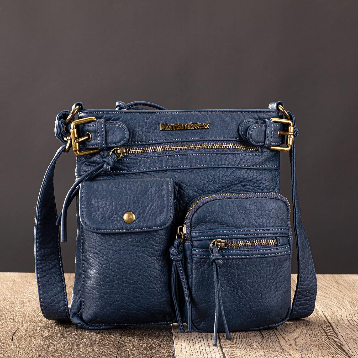 imageMontana West Crossbody Bag for Women Soft Washed Leather Multi Pocket crossbody handbagsBlue