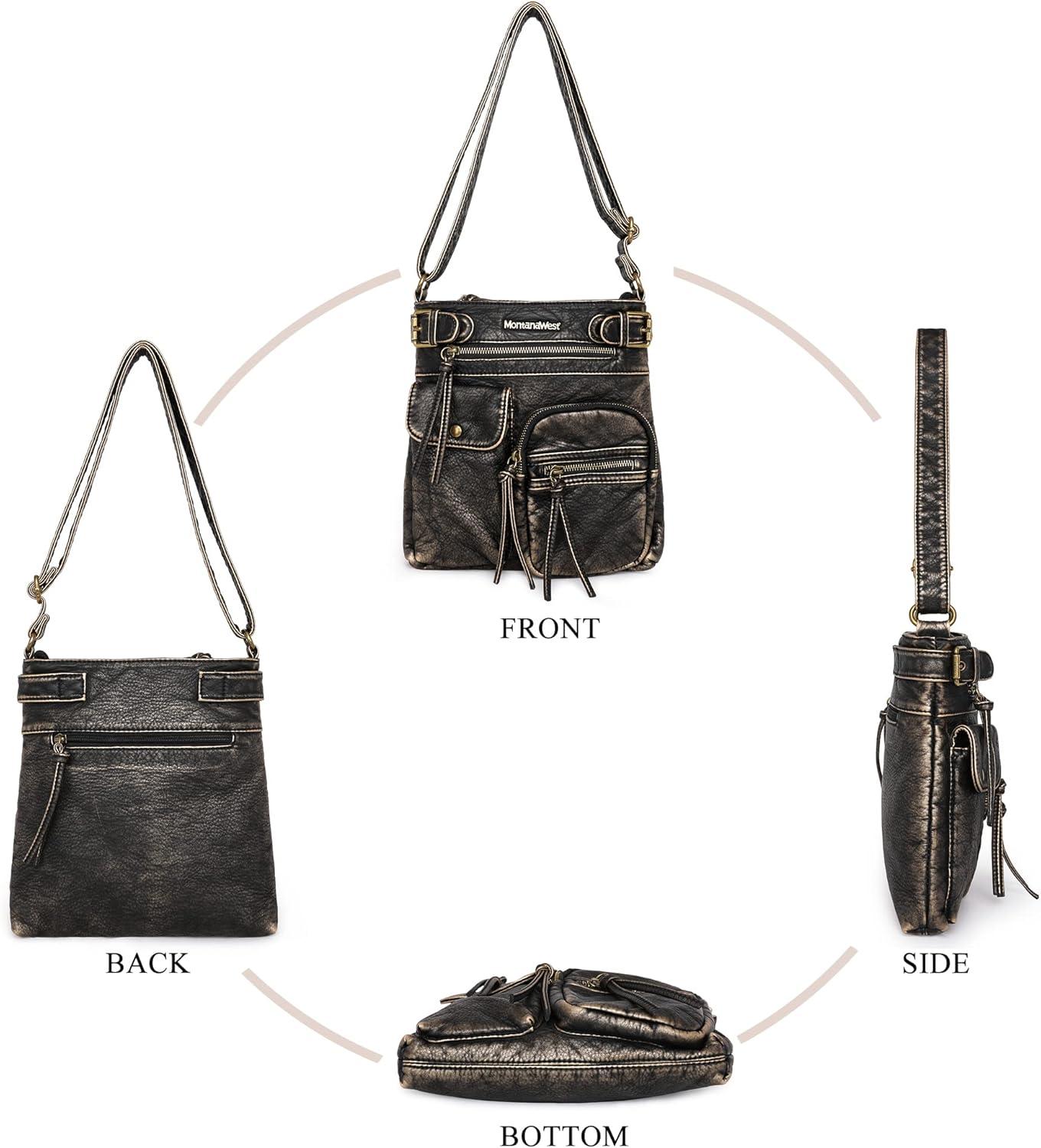 imageMontana West Crossbody Bag for Women Soft Washed Leather Multi Pocket crossbody handbagsBronze