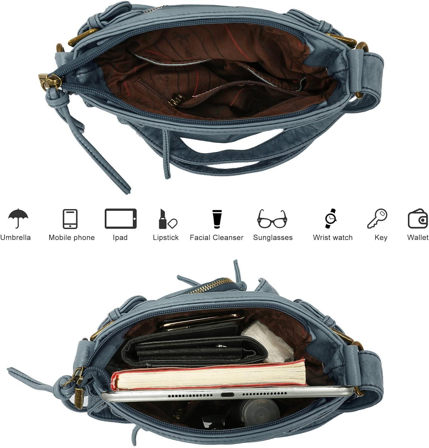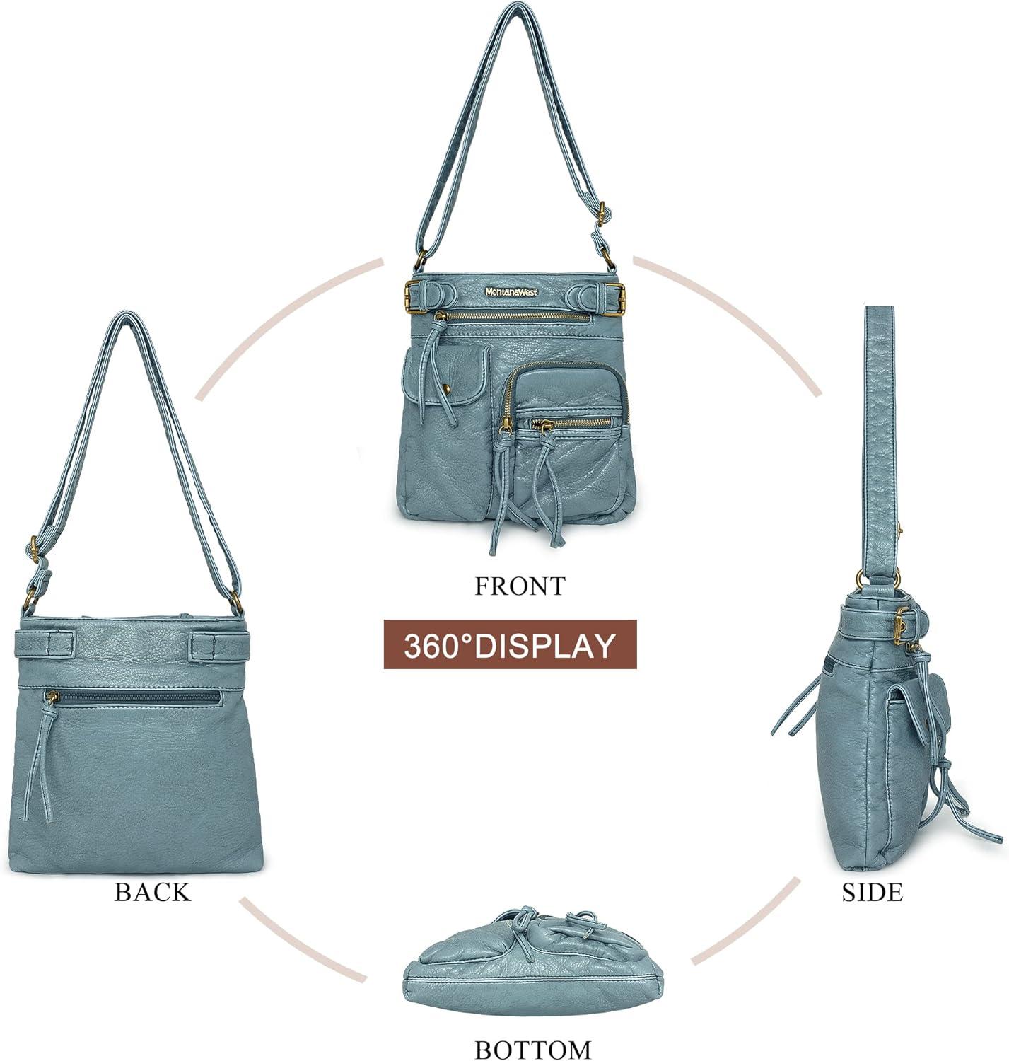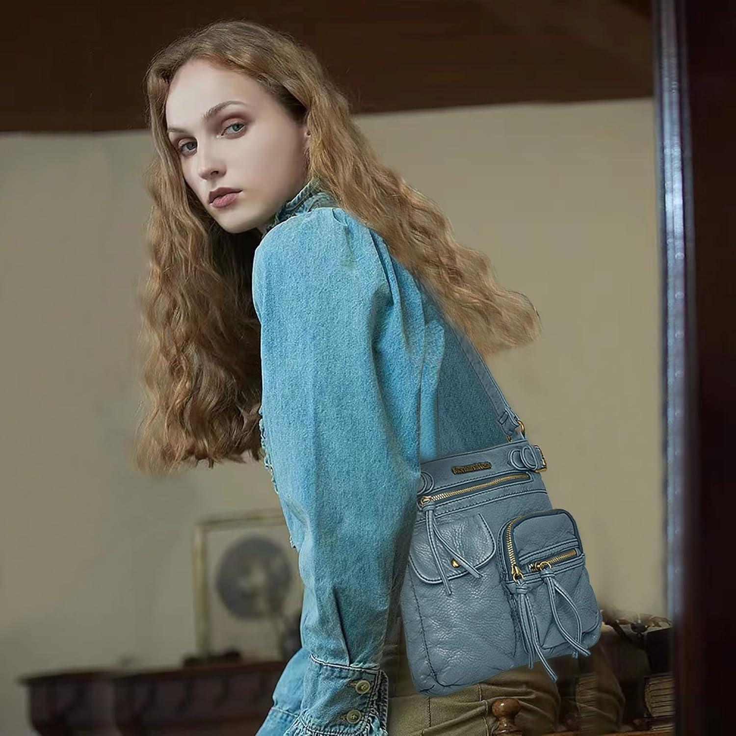 Montana West Crossbody Bag for Women Soft Washed Leather Multi Pocket crossbody handbags(Jean)