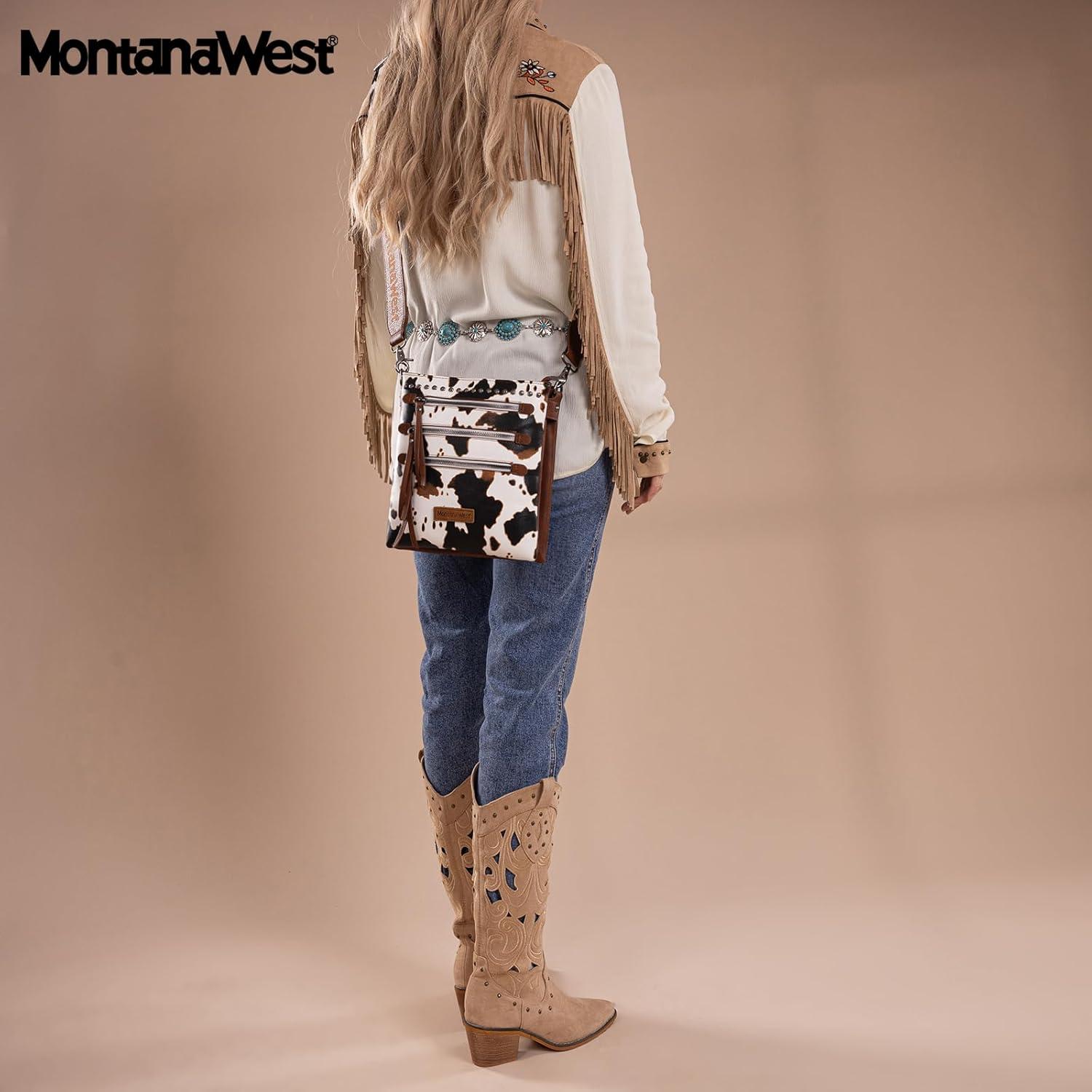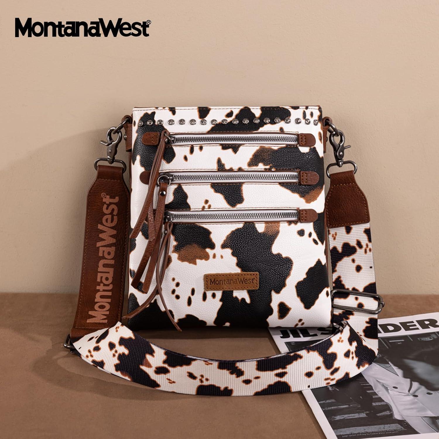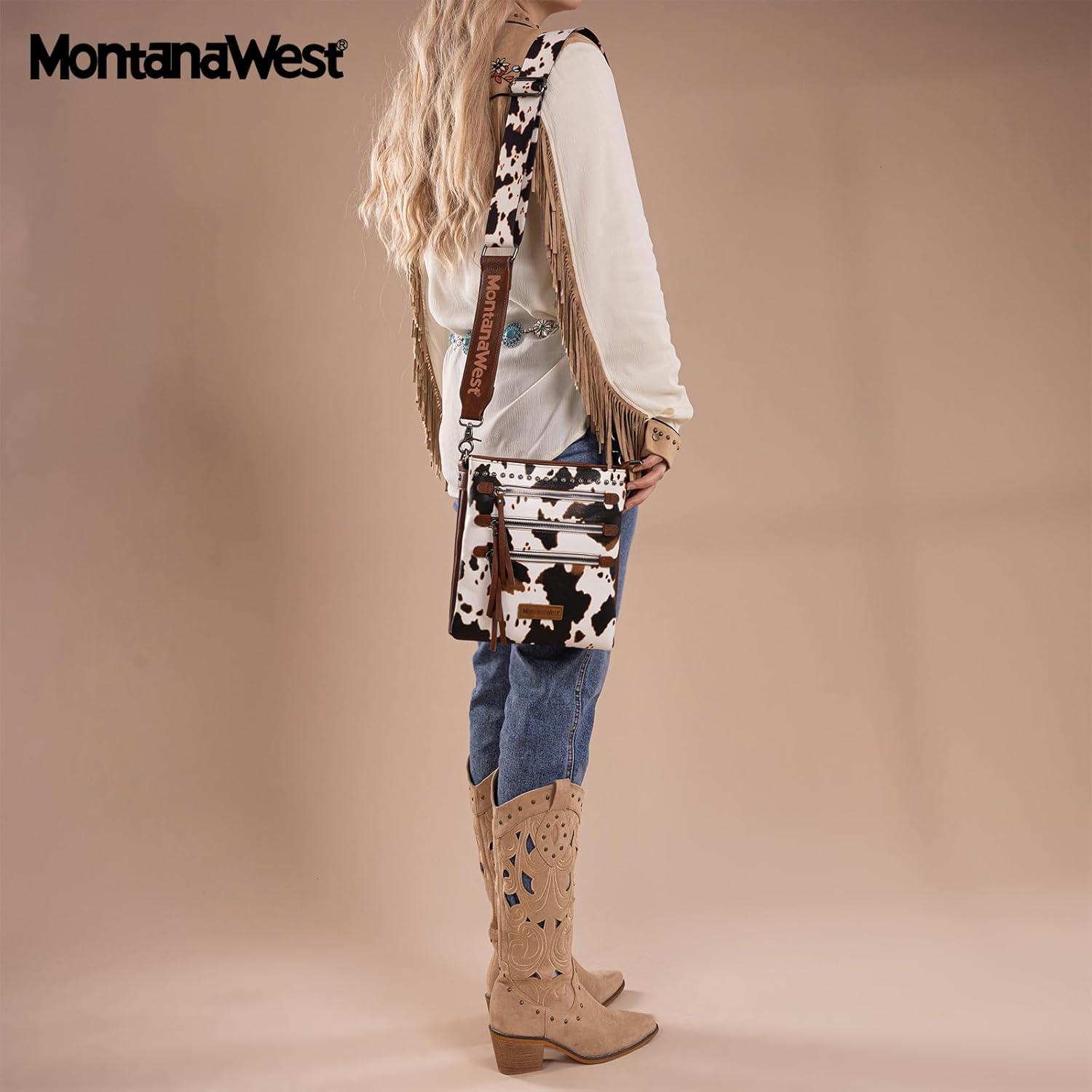 Montana West Crossbody Bags for Women Multi Pocket Cross Body Bag Purses with Guitar Strap(Vintage Cow)