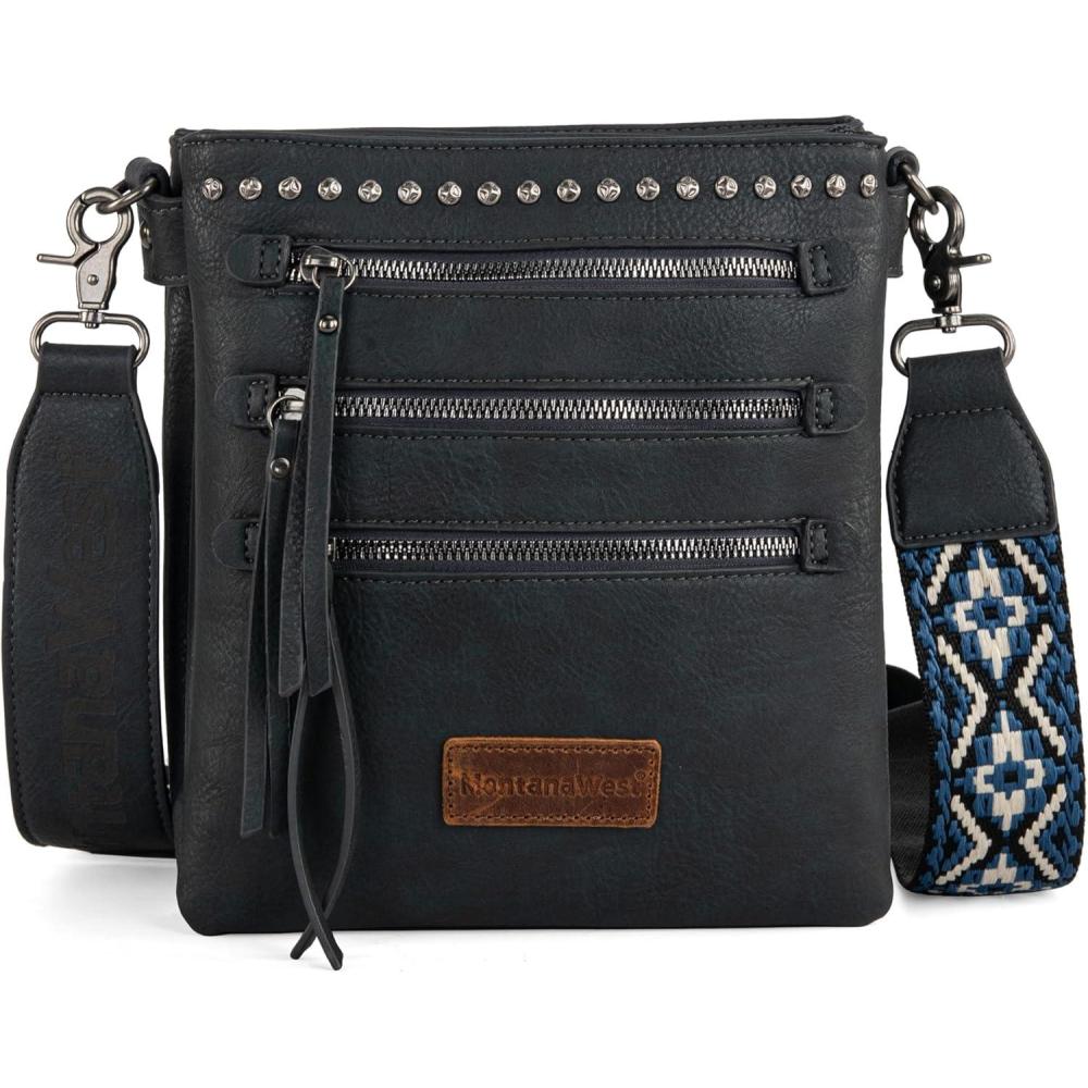 Montana West Crossbody Bags for Women Multi Pocket Cross Body Bag Purses with Guitar Strap(Vintage Navy Blue)