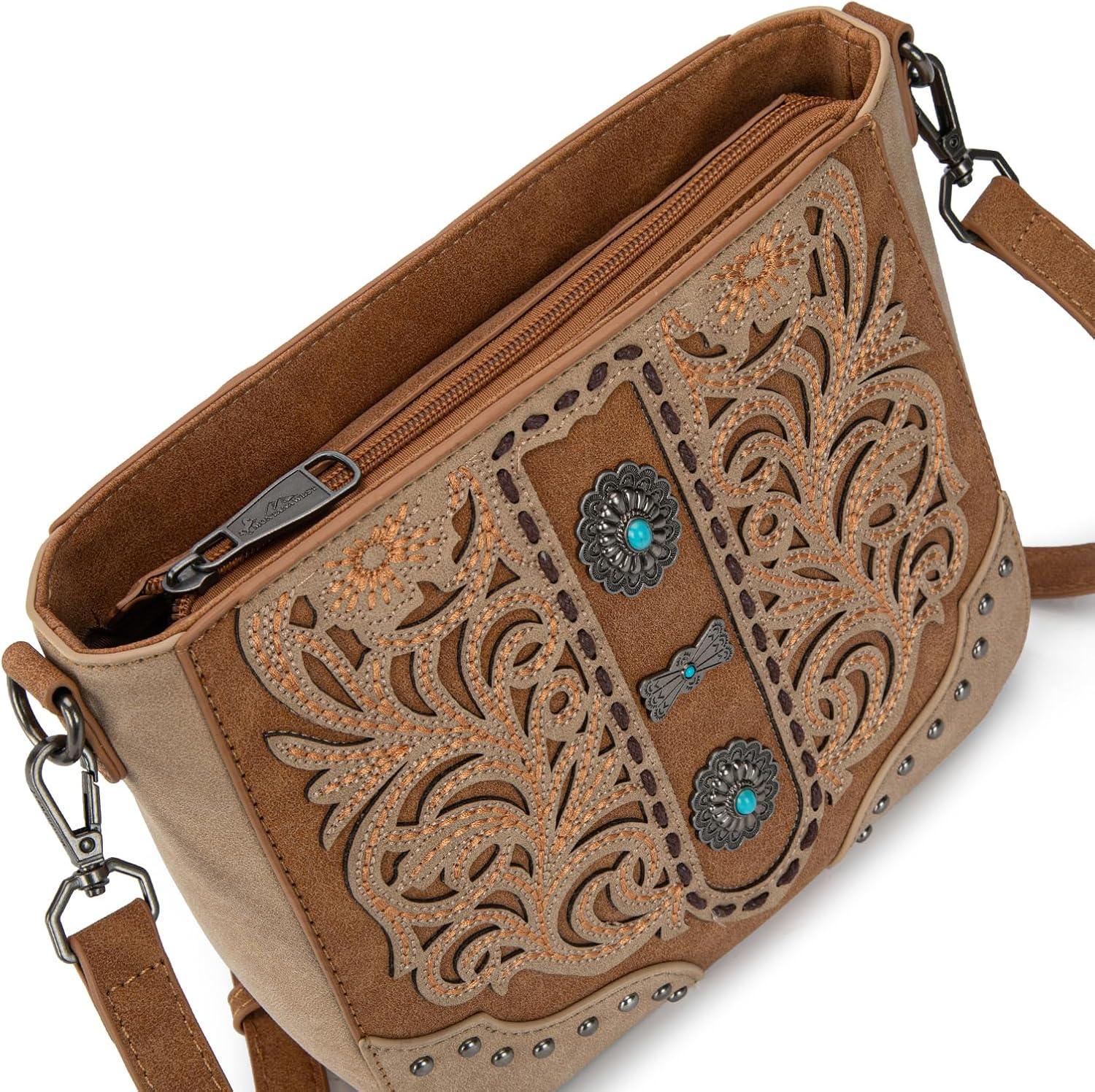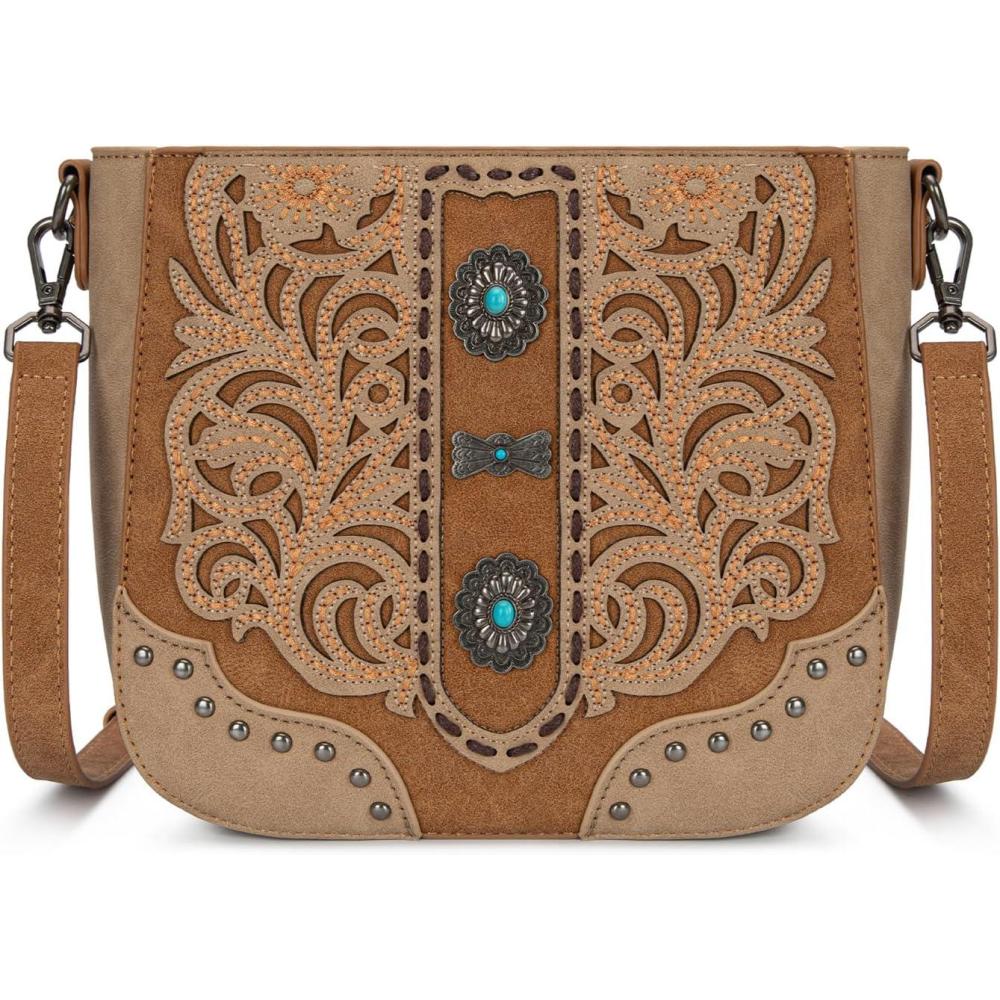 Montana West Crossbody Bags for Women Western Tooled Embroidered Purse(Brown)
