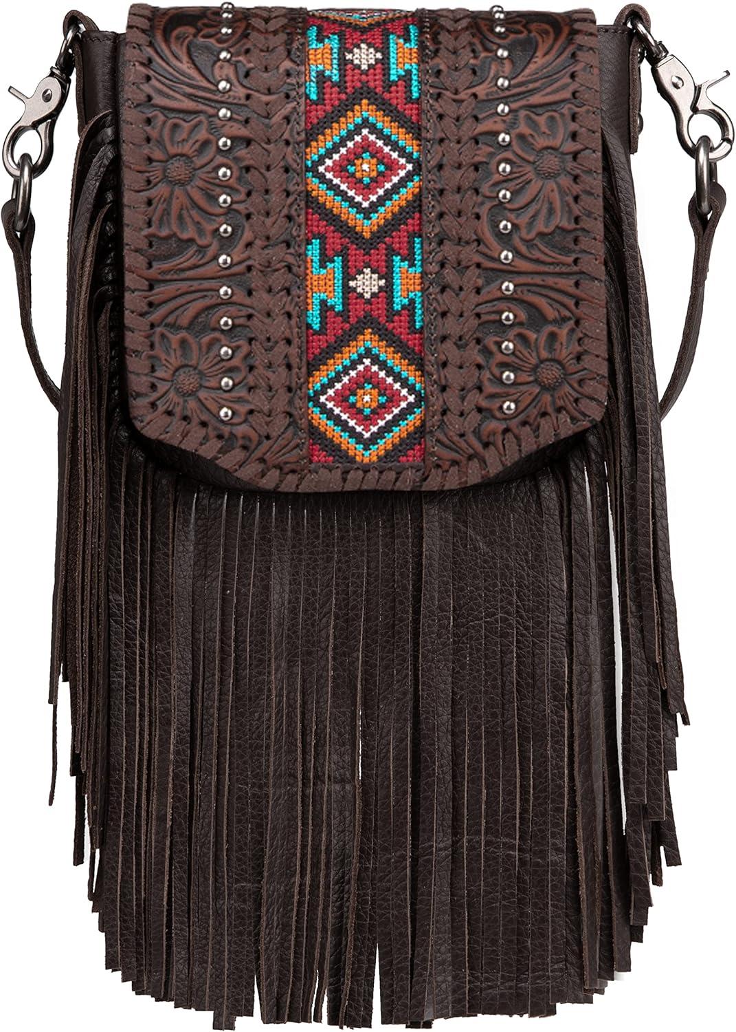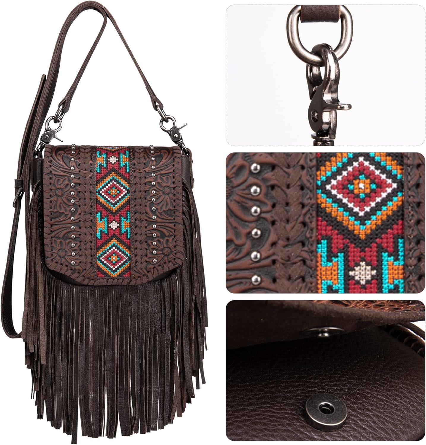 Montana West Fringe Purse Western Purses for Women Crossbody Bag(D3-floral Tooled With Embroidered Aztec-coffee)