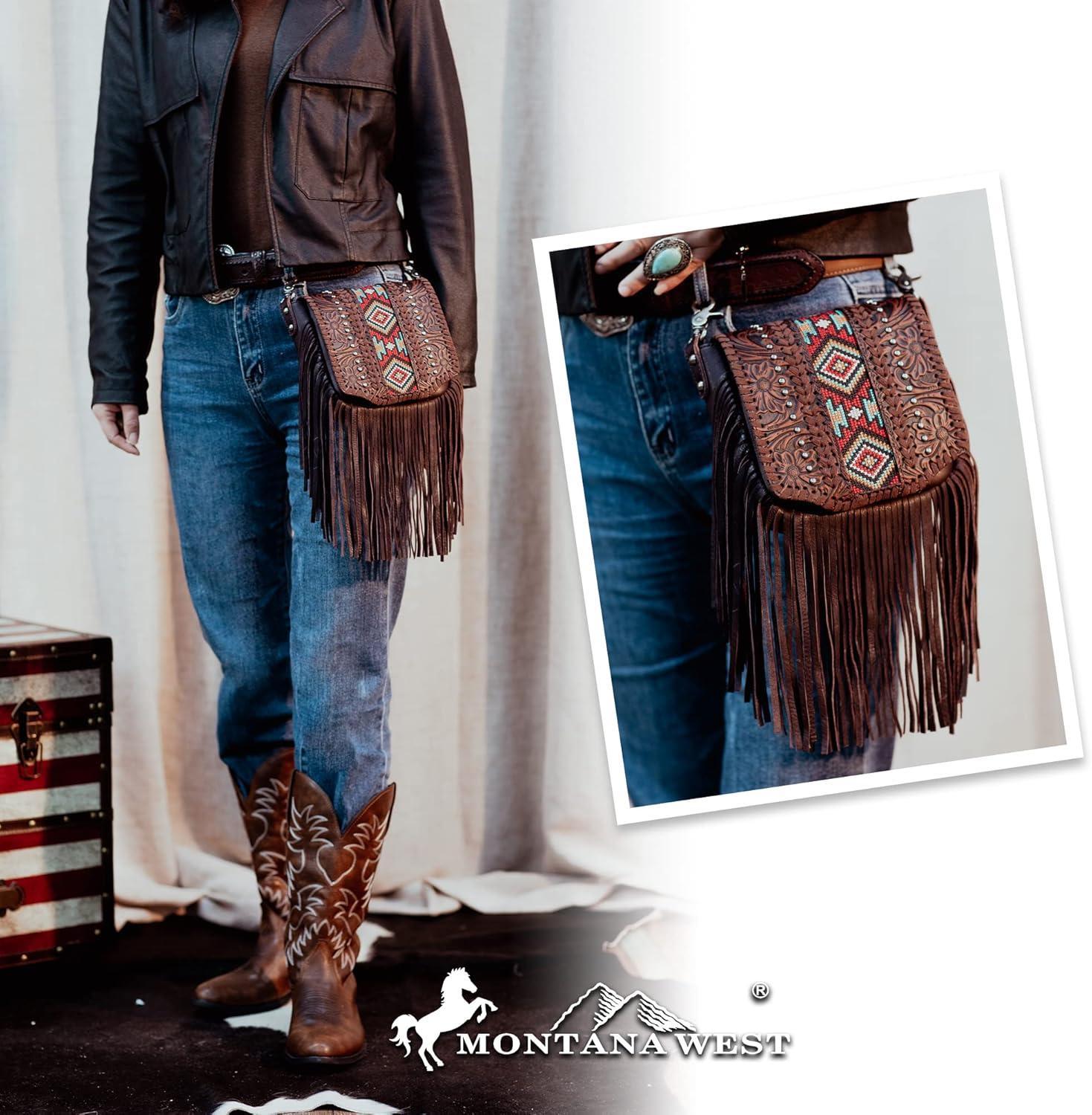 Montana West Fringe Purse Western Purses for Women Crossbody Bag(D2-floral Tooled With Embroidered Aztec-brown)
