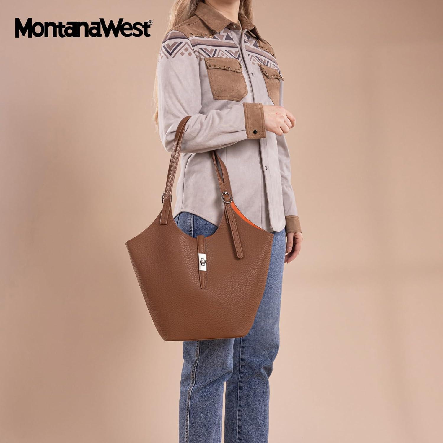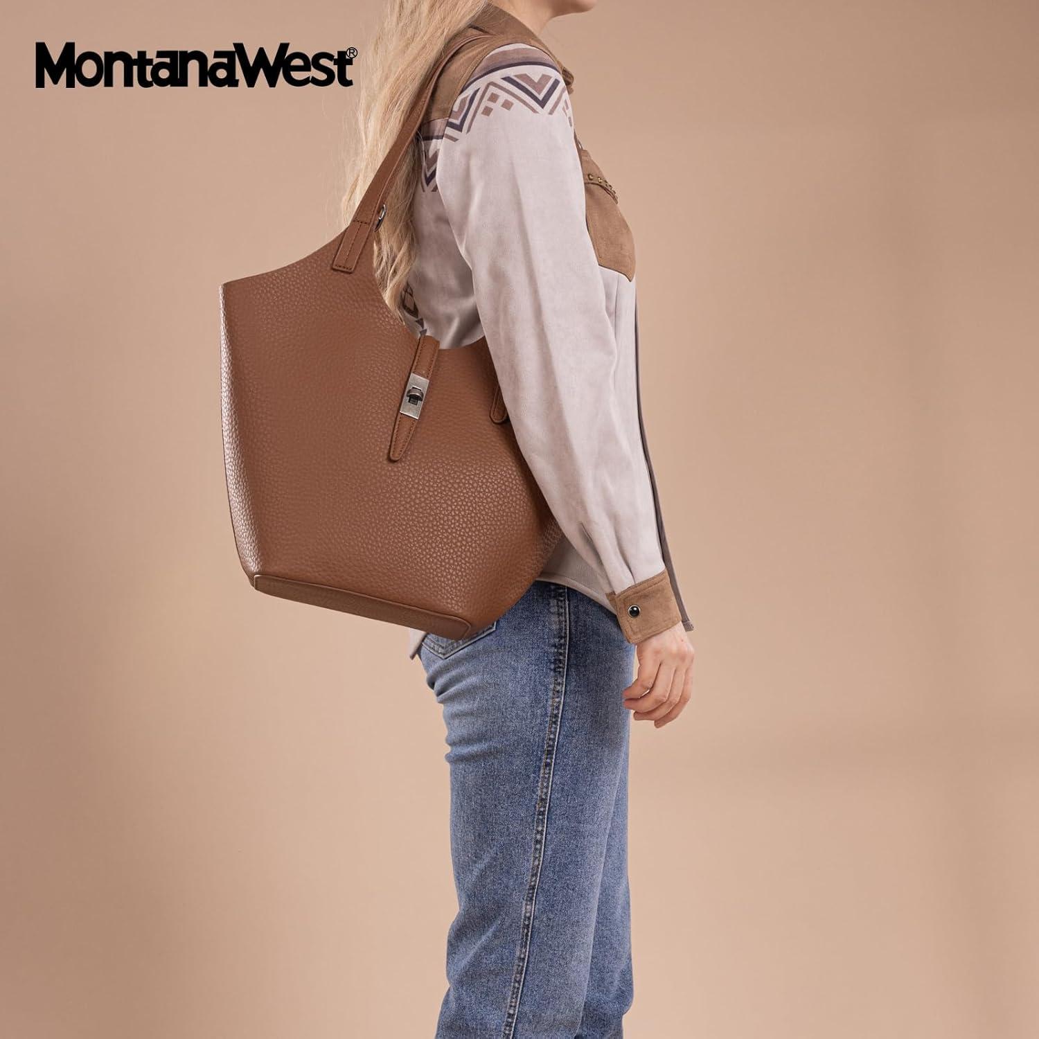 Montana West Hobo Bag for Women Shoulder Purse Handbags with Detachable Makeup Bag(B-brown)