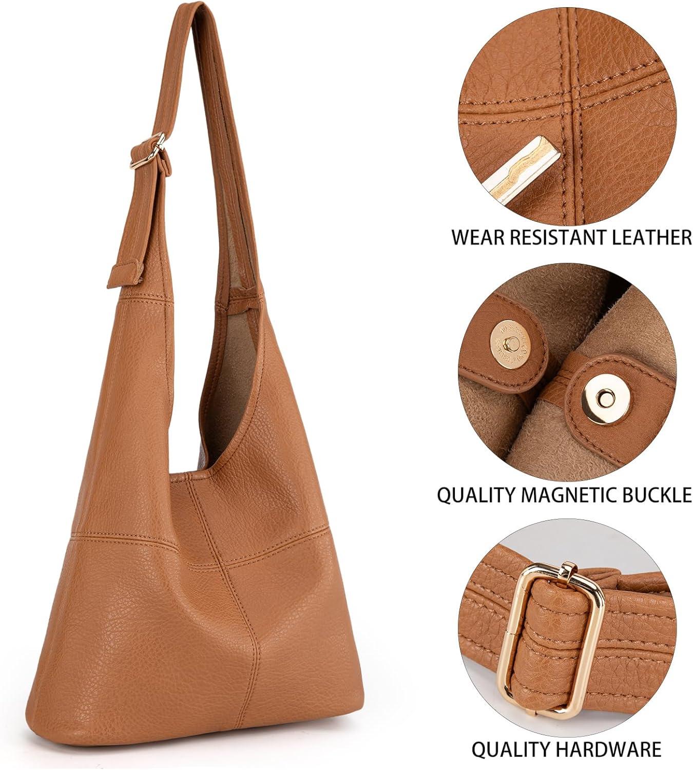 Montana West Hobo Bags Purse for Women Ultra Soft Foldable Shoulder Slouchy Handbags with Cosmetic bag(Classic-caramel Brown)