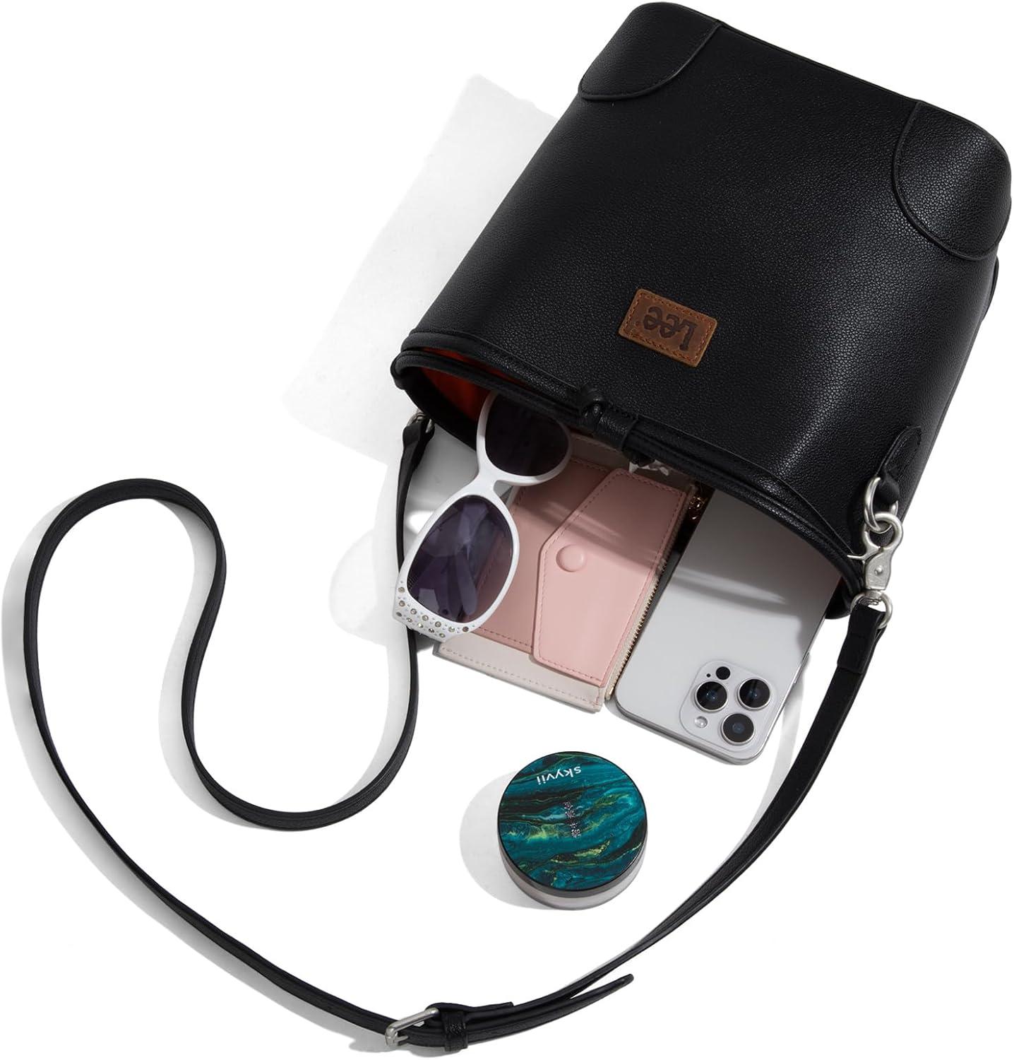 Montana West Lee Small Crossbody Bags for Women Drawstring Bucket Purse with Adjustable Strap(Black)