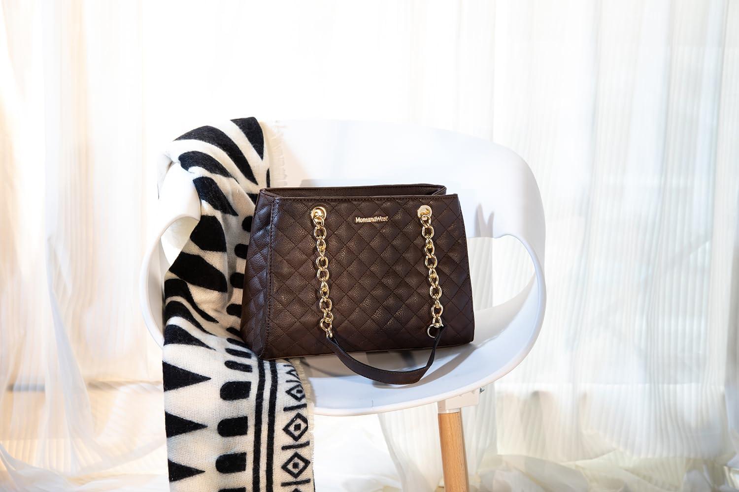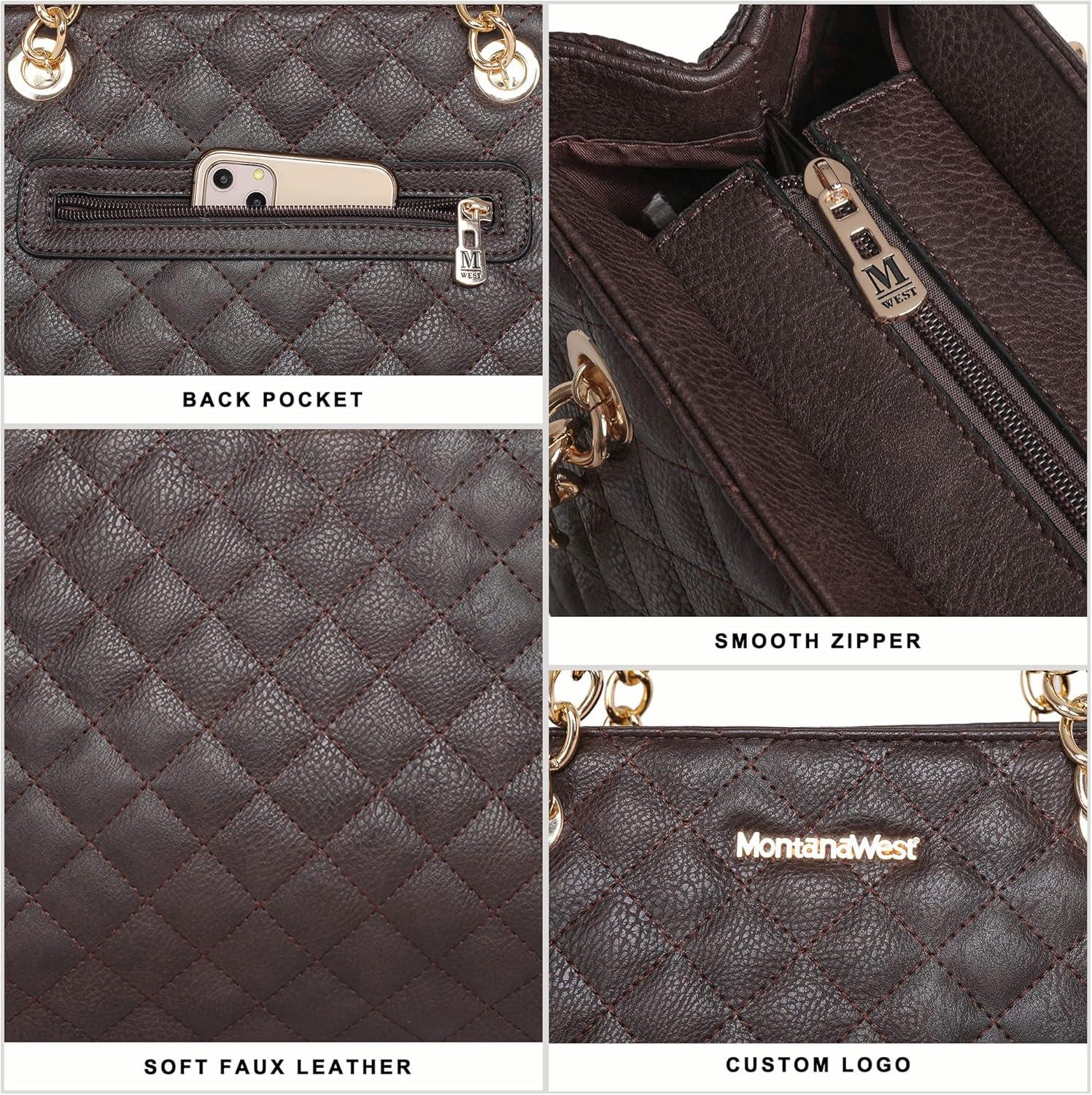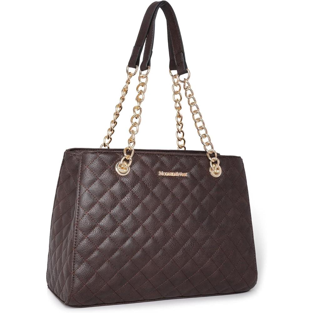 imageMontana West MEDIUM Tote Bag for Women Quilted Chain Handbags Shoulder Purse040brown