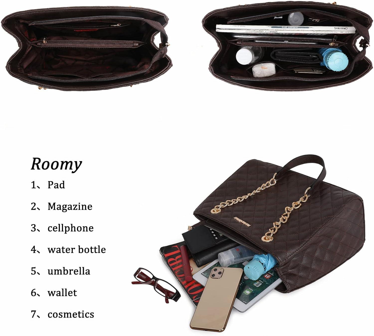 Montana West MEDIUM Tote Bag for Women Quilted Chain Handbags Shoulder Purse(040coffee)