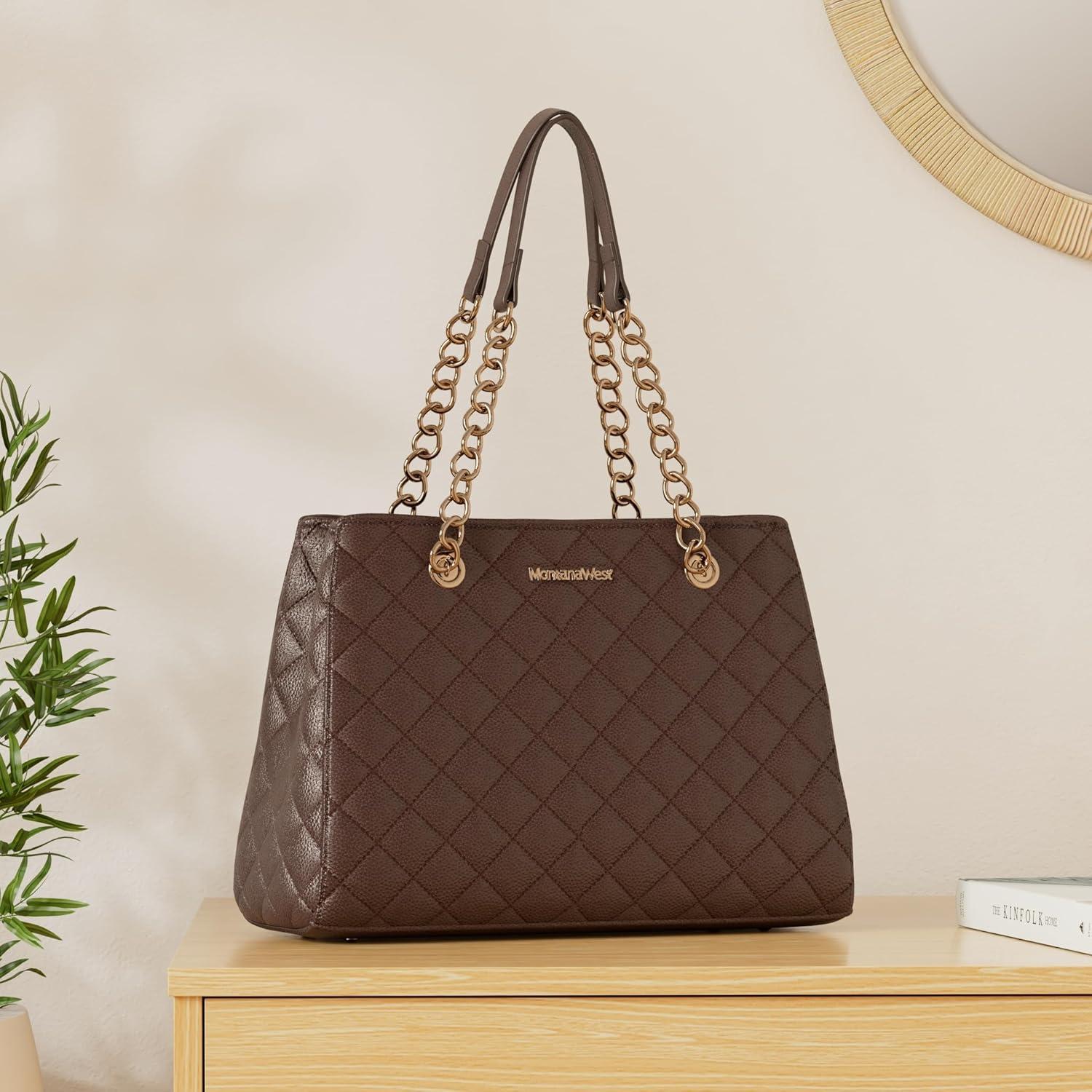 Montana West MEDIUM Tote Bag for Women Quilted Chain Handbags Shoulder Purse(040brown)