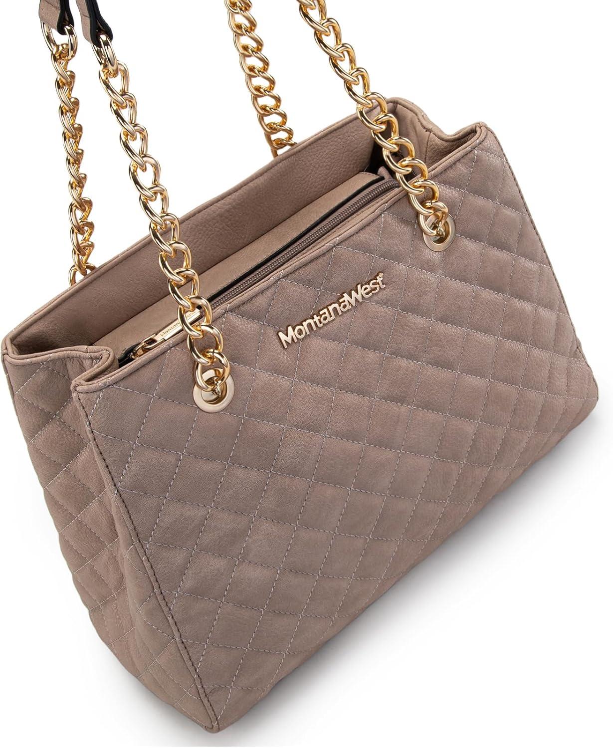 imageMontana West MEDIUM Tote Bag for Women Quilted Chain Handbags Shoulder Purse040tan
