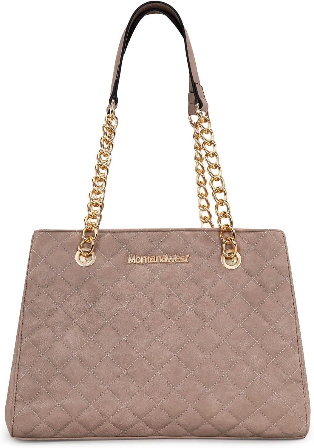 Montana West MEDIUM Tote Bag for Women Quilted Chain Handbags Shoulder Purse(040tan)