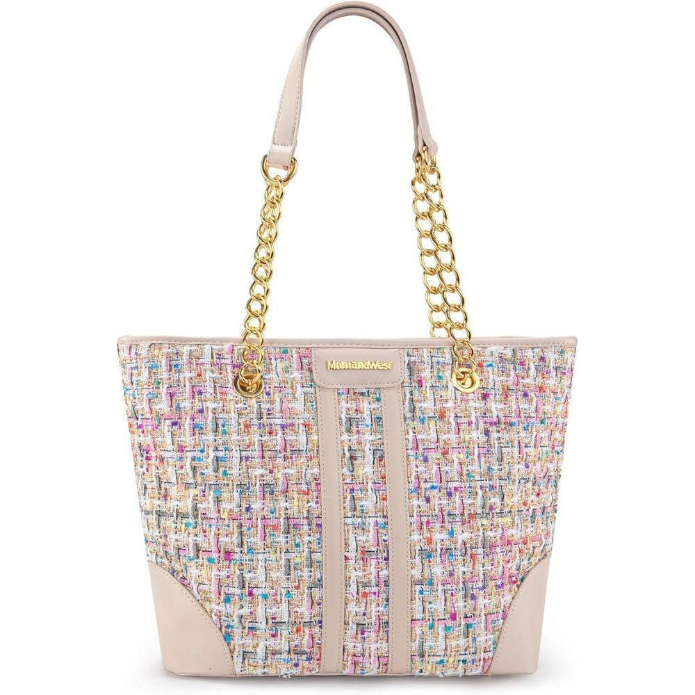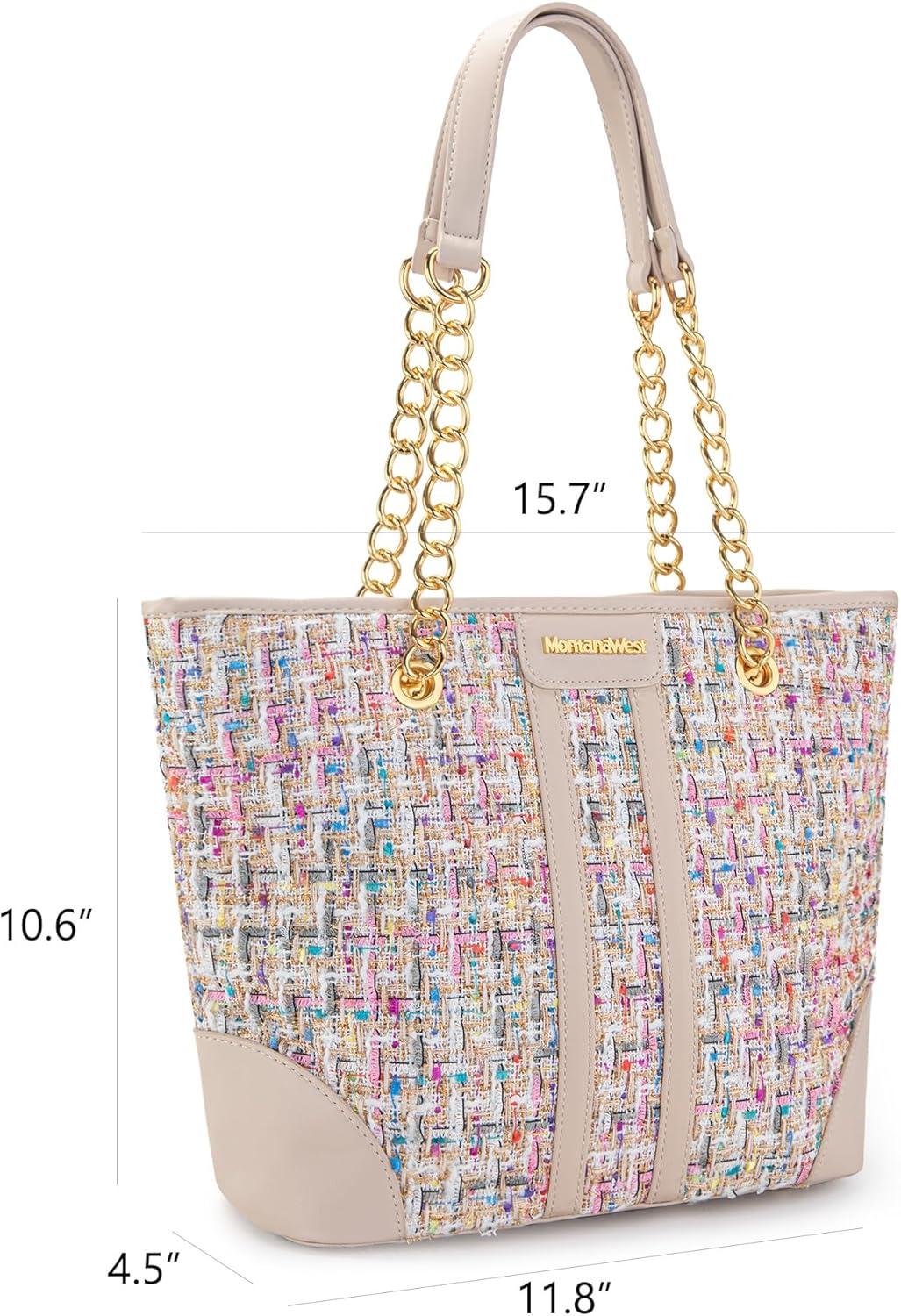 imageMontana West MEDIUM Tote Bag for Women Quilted Chain Handbags Shoulder PurseM Beige