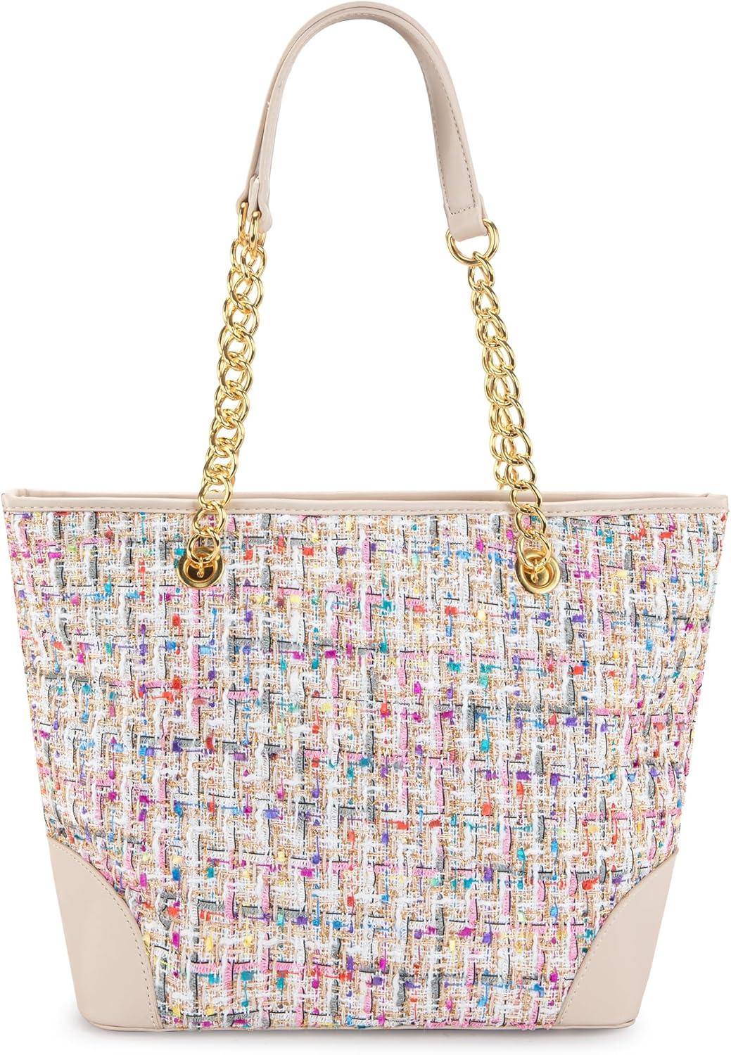 Montana West MEDIUM Tote Bag for Women Quilted Chain Handbags Shoulder Purse(M Beige)