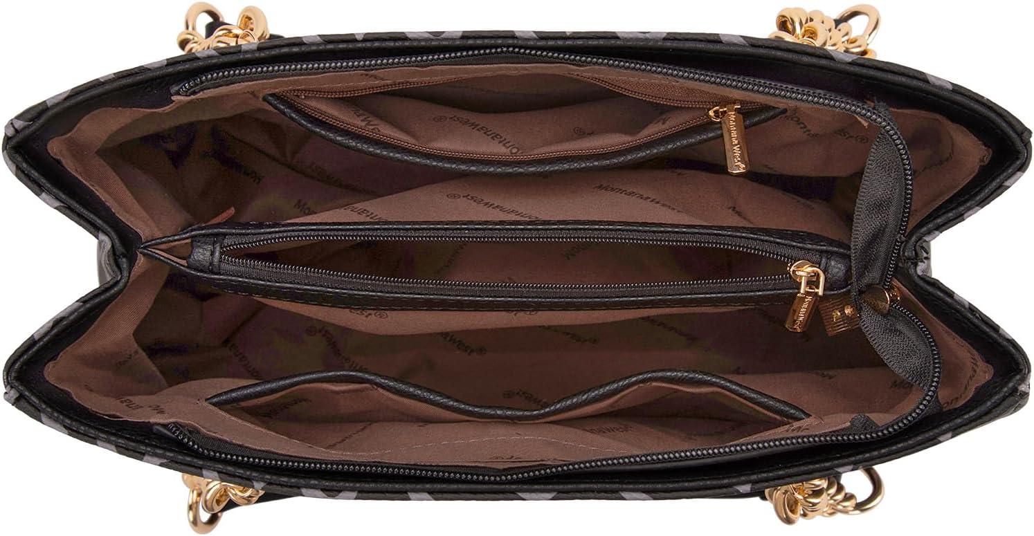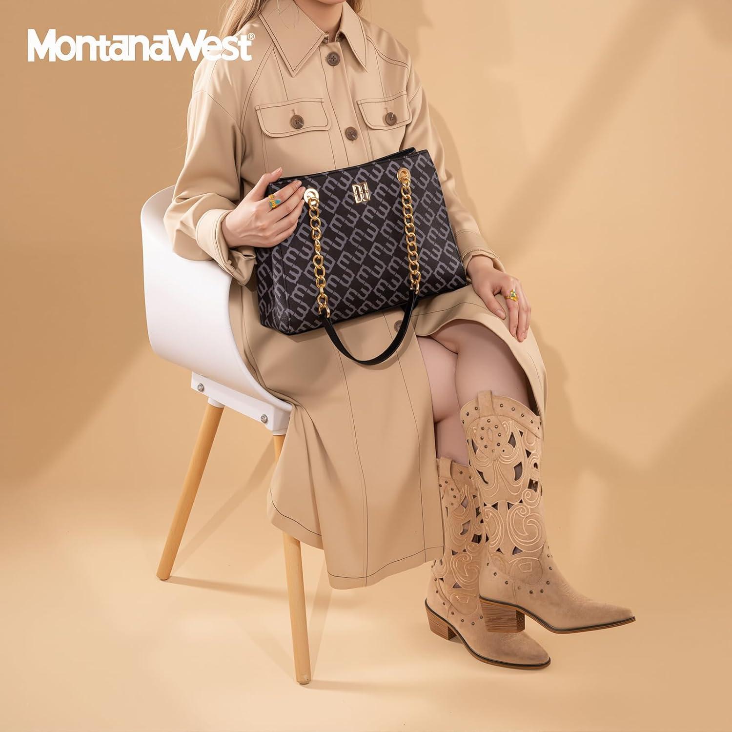 imageMontana West MEDIUM Tote Bag for Women Quilted Chain Handbags Shoulder PurseMonogram Black