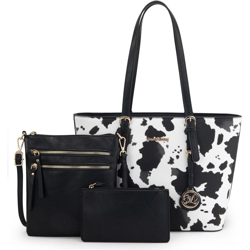 Montana West Purses for Women Tote Bag 3Pcs Set Leopard Print Satchel Handbags(055 Cow Black)