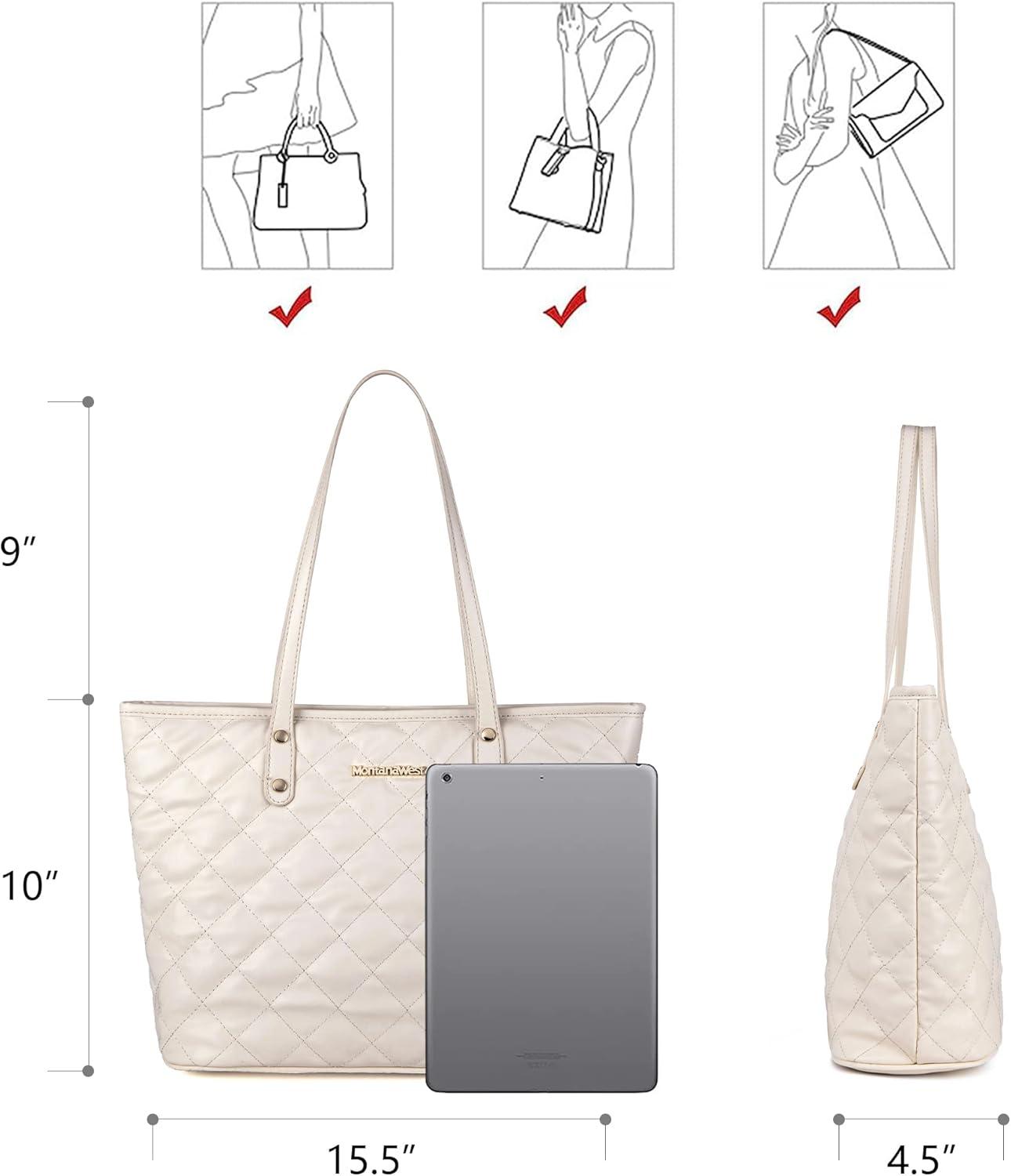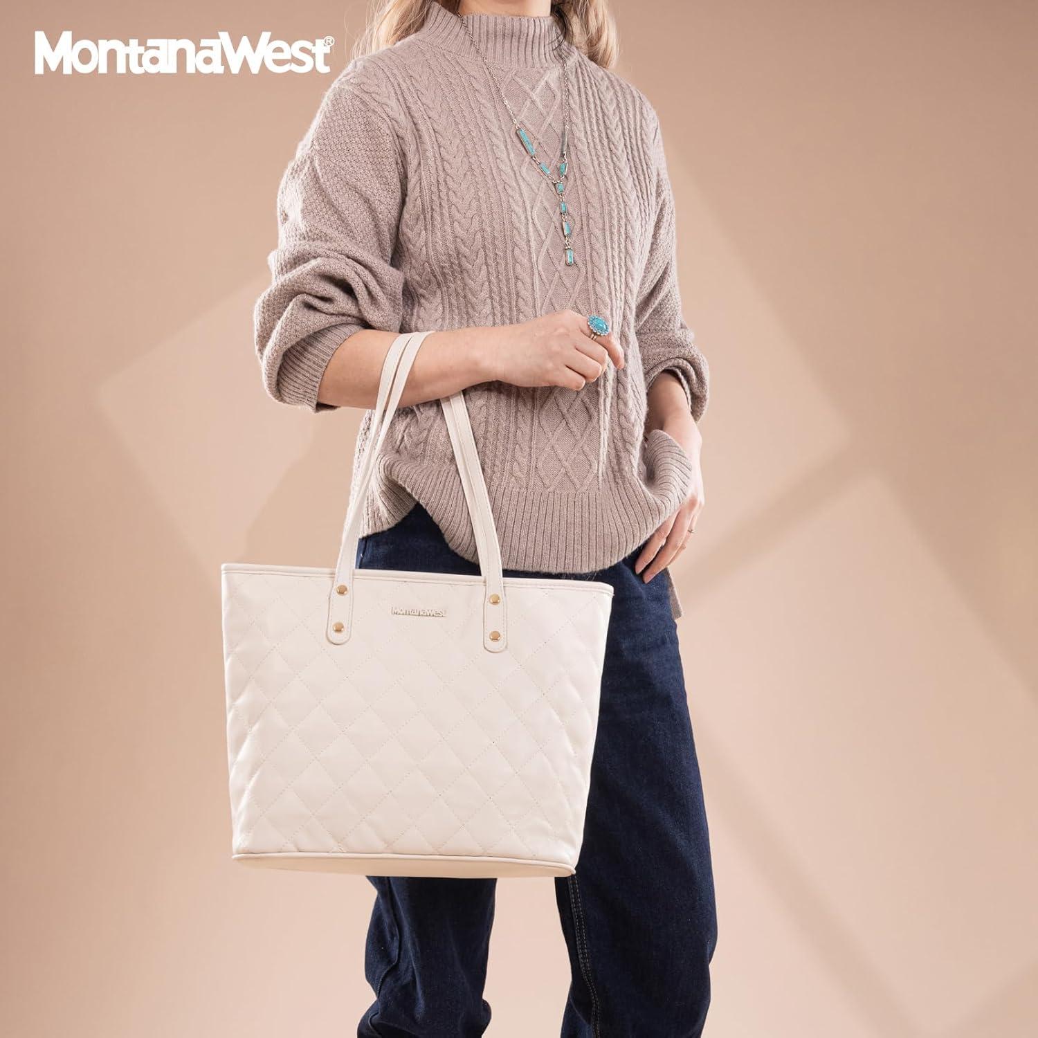 Montana West Quilted Tote Bag for Women Large Shoulder Bag Fashion Handbags with Top Zipper(Quilted Beige)