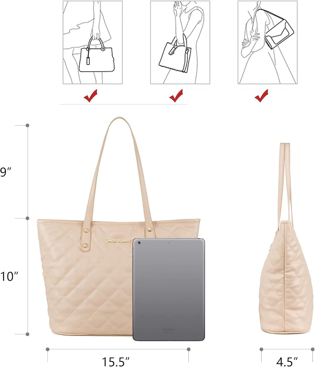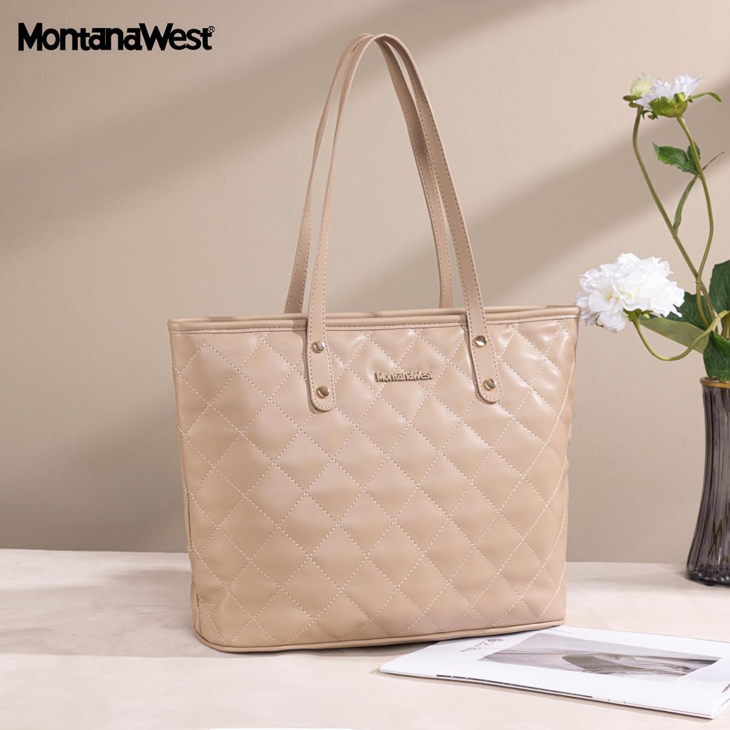 Montana West Quilted Tote Bag for Women Large Shoulder Bag Fashion Handbags with Top Zipper(Quilted Khaki)