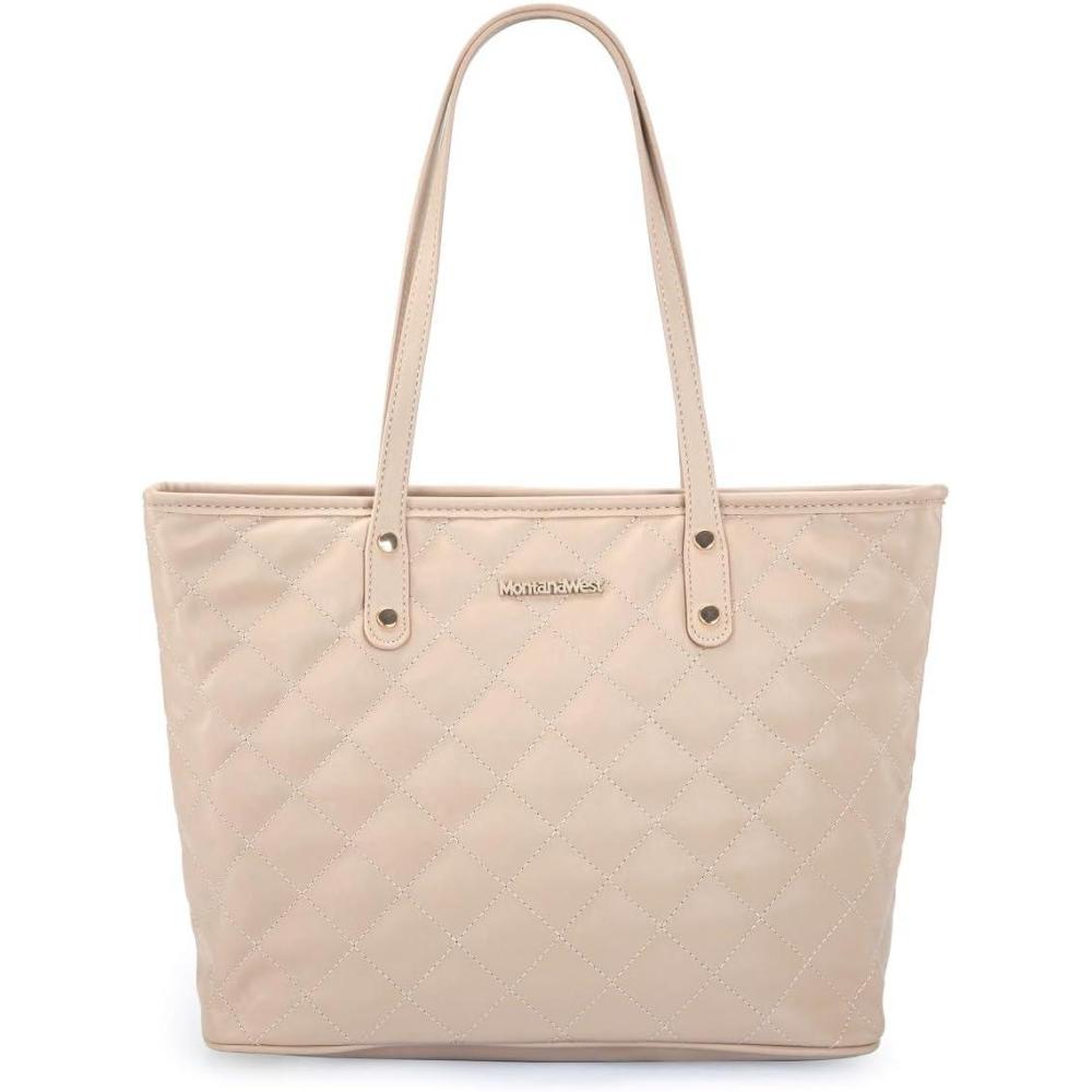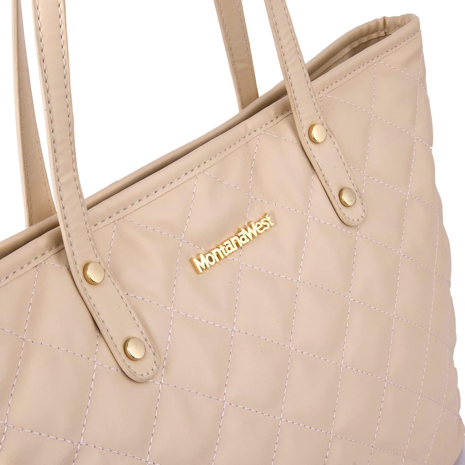 imageMontana West Quilted Tote Bag for Women Large Shoulder Bag Fashion Handbags with Top ZipperQuilted Platinum