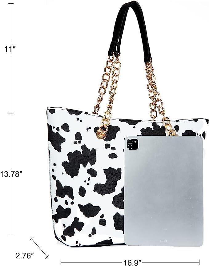 Montana West Tote Bag for Women Chain Top-handle Handbags(B Cow)