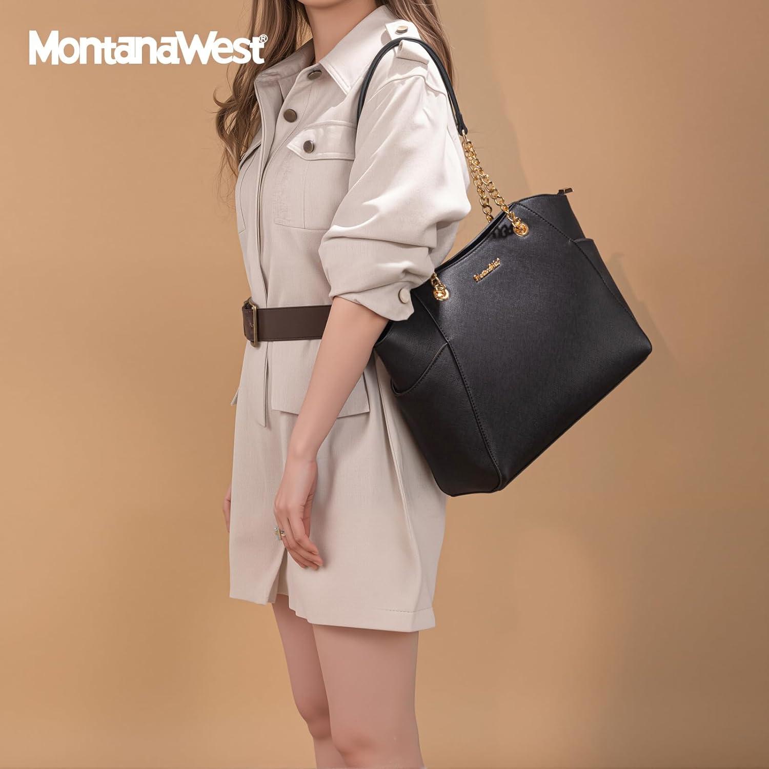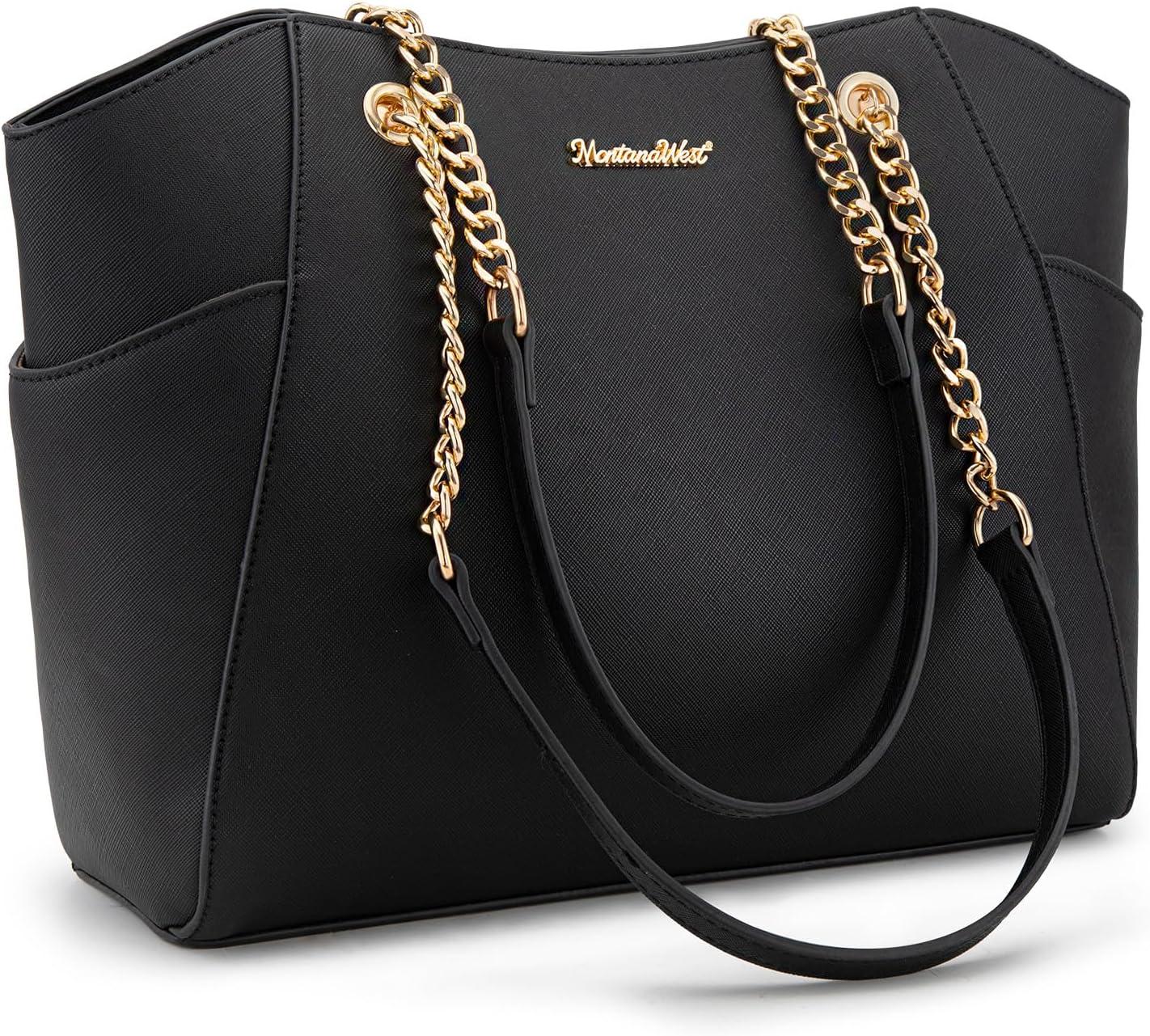 Montana West Tote Bag for Women Chain Top-handle Handbags(M Black)