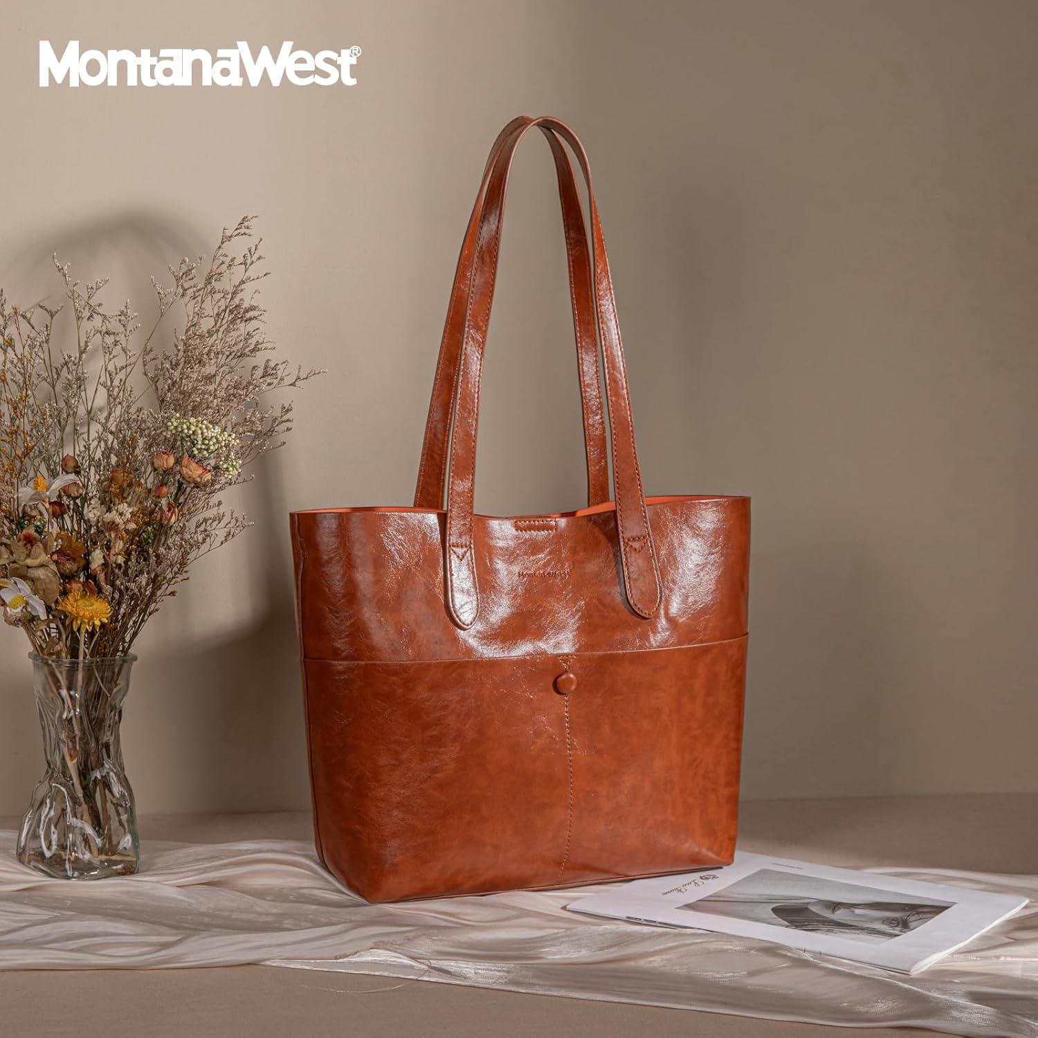 Montana West Tote Bag for Women Purses and Handbags Shoulder Bag(Brown)
