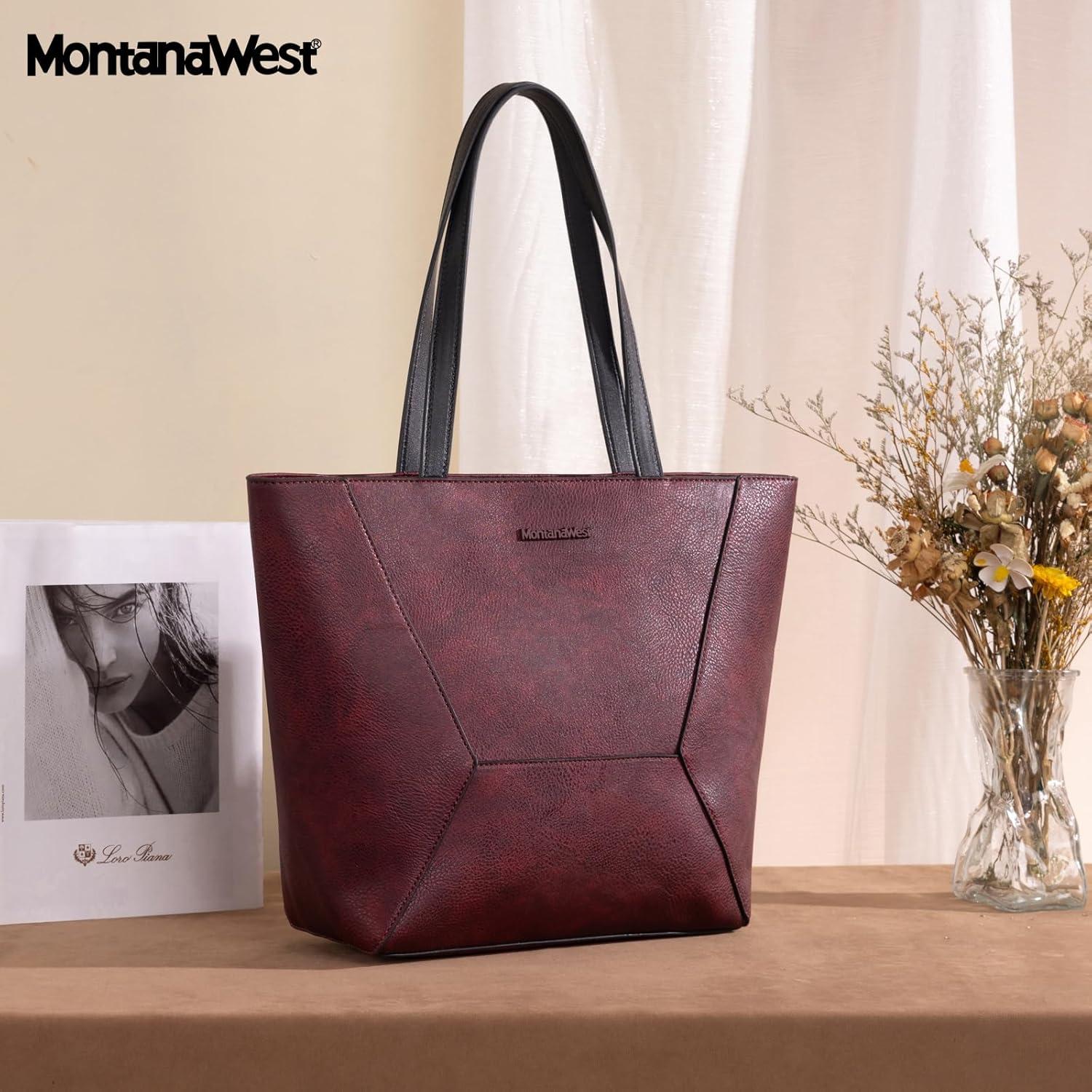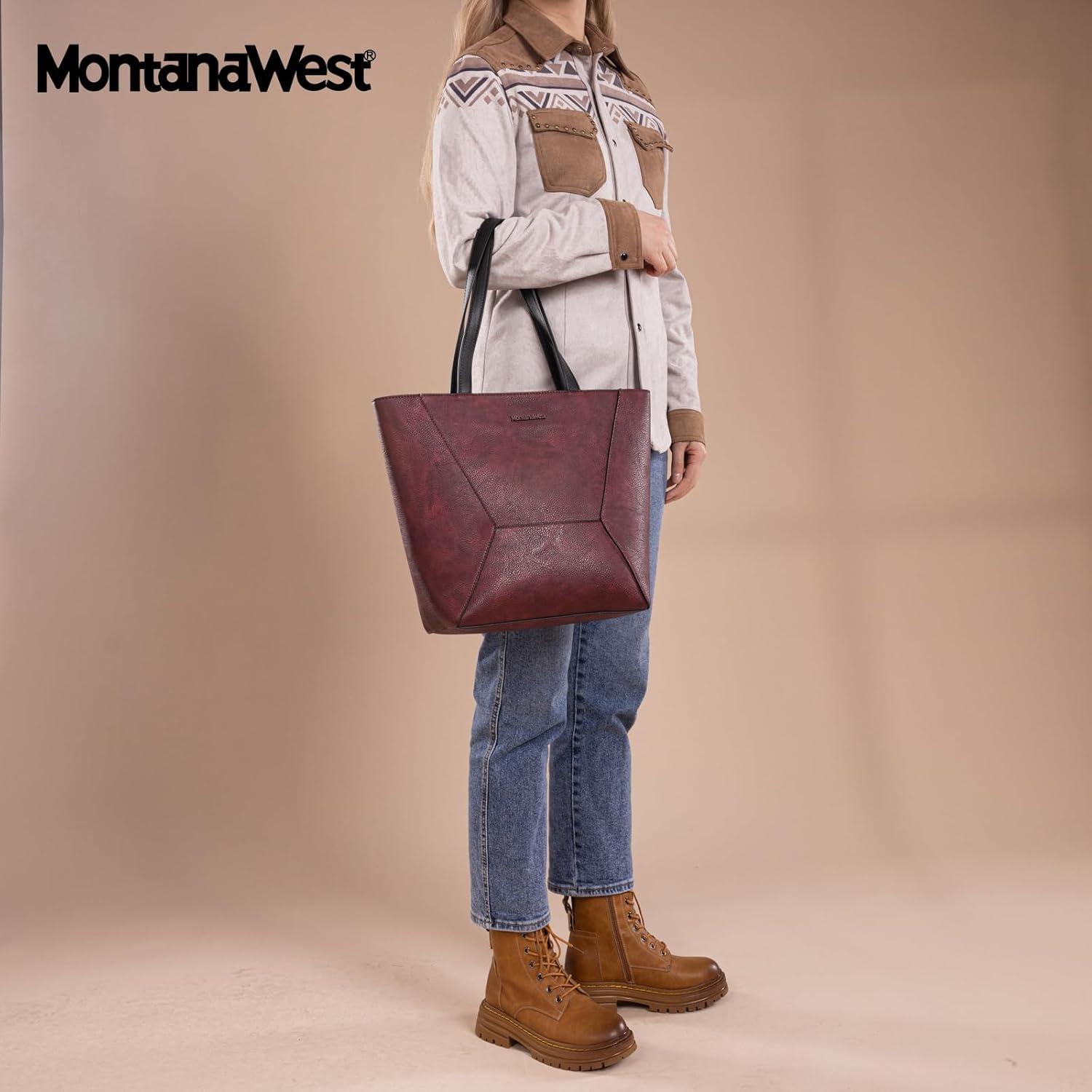 Montana West Tote Bag for Women Work Top Handle Handbags and Purses(Dahila Red)