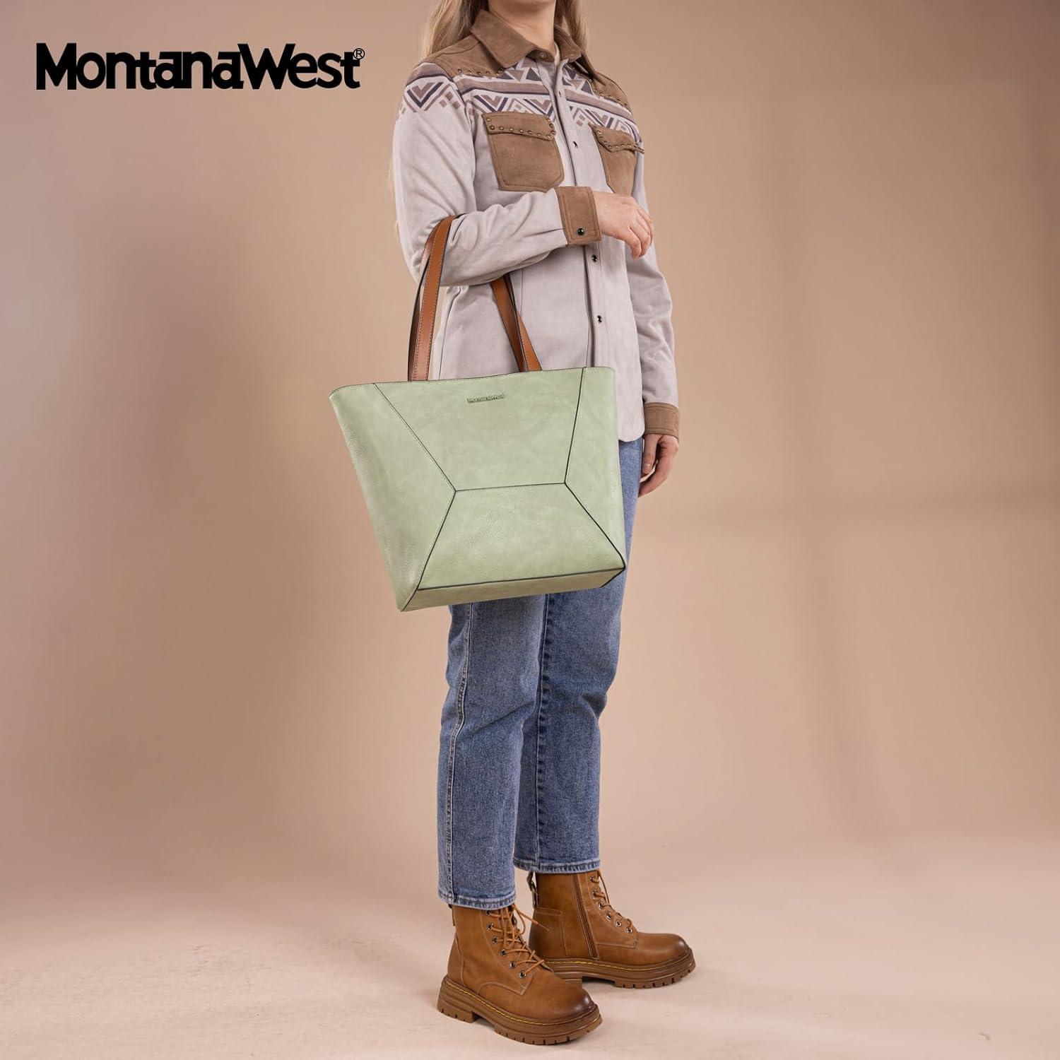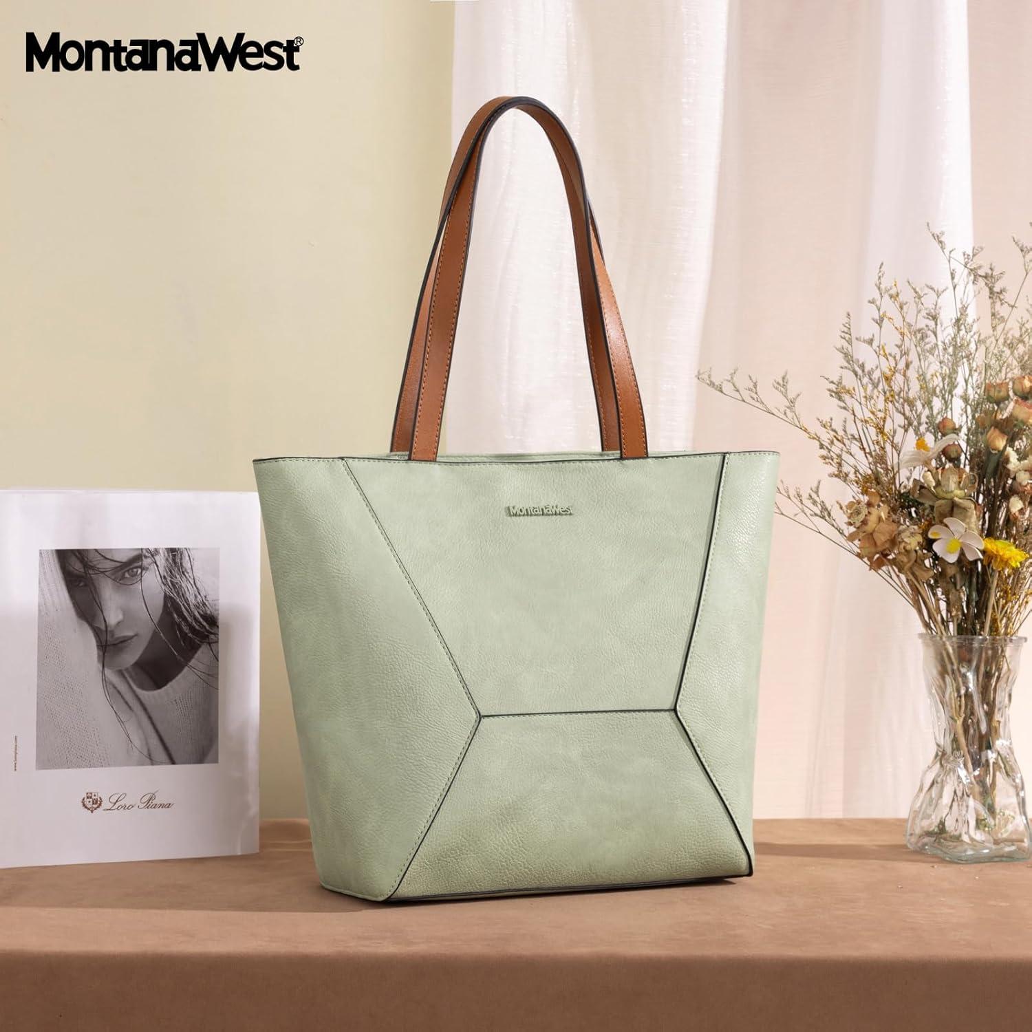 Montana West Tote Bag for Women Work Top Handle Handbags and Purses(Dusty Grey Leaf Green)
